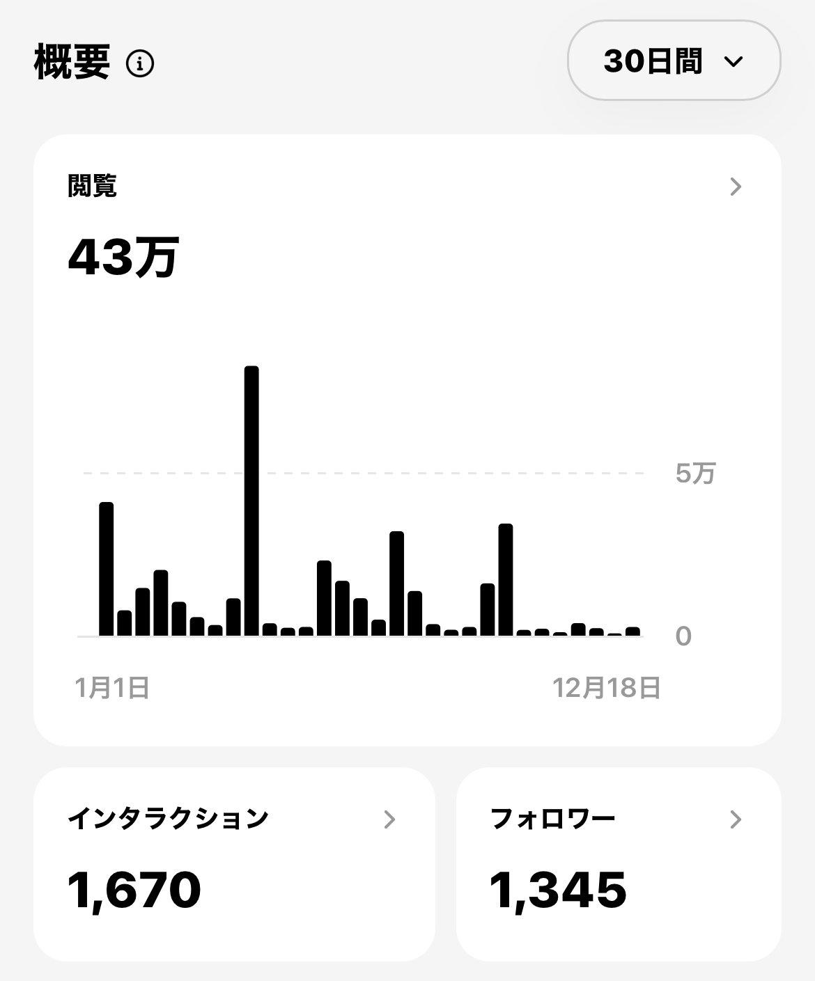 たまにユーザーの投稿もバズってますが滅多にありません。なのにスレッズでは、ほぼ毎日普通の一般人の投稿が当たり前のように流れてきます。