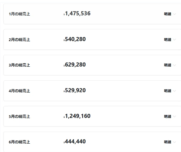 年間で合わせて4700万ほどの売上です。この売上が本記事の方法を使う事で3年間、あまり変わらず売上が続いています。たった1つの記事だけです。私は複数垢運用していて7つの記事を運用しています。他も全く同じ方法です。正直無限に稼げる状況です。