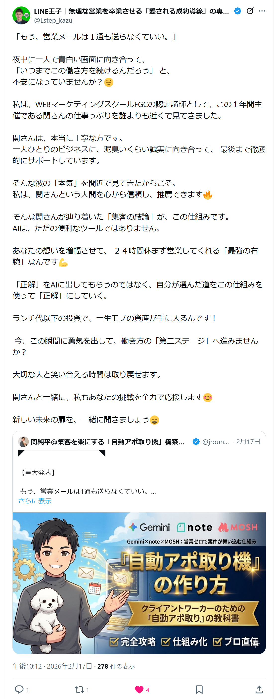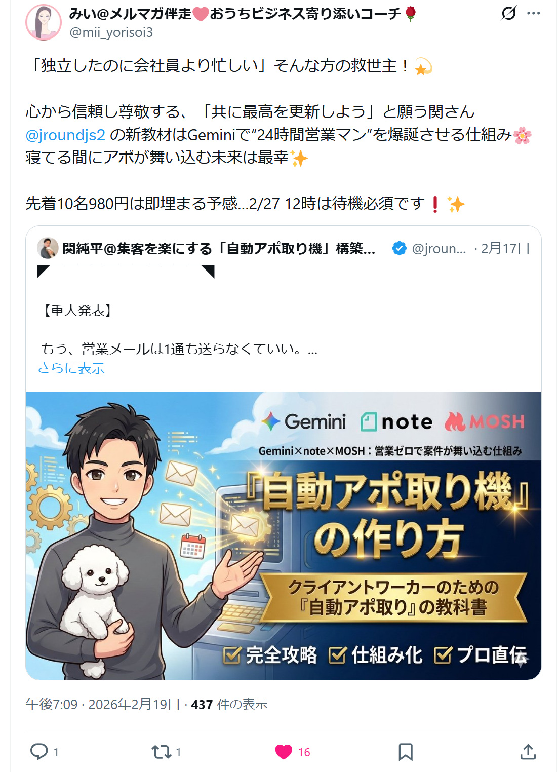 【Gemini × note × MOSH】:営業メールゼロで案件が舞い込む?!
