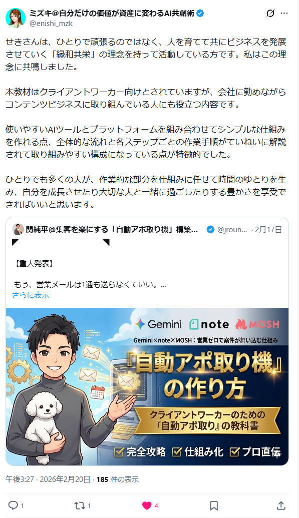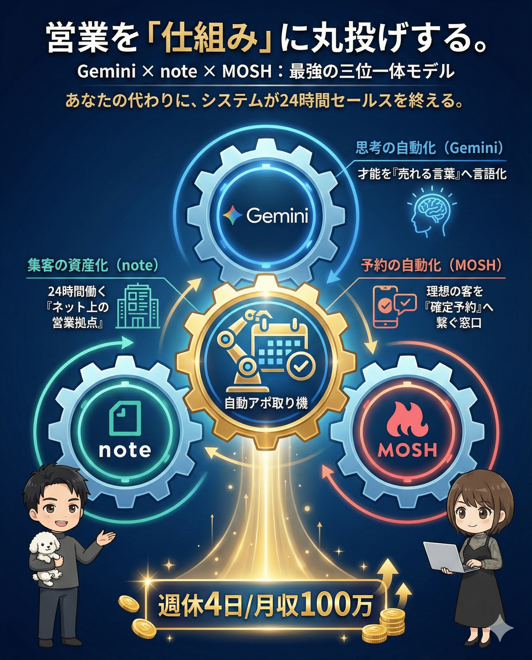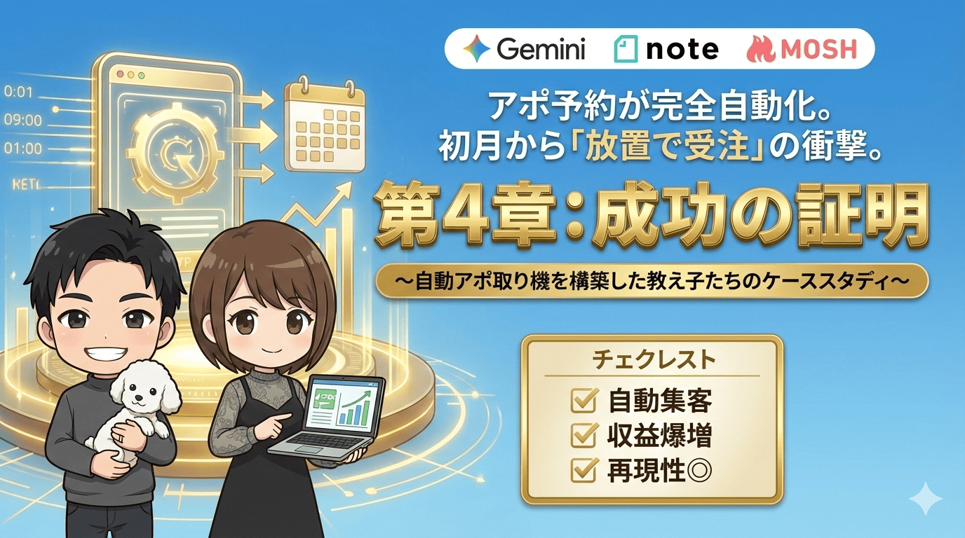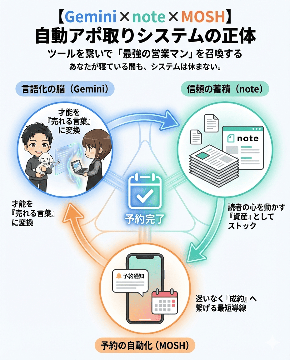 その答えが、私が提唱する【Gemini × note × MOSH】の自動アポ取りシステムです。