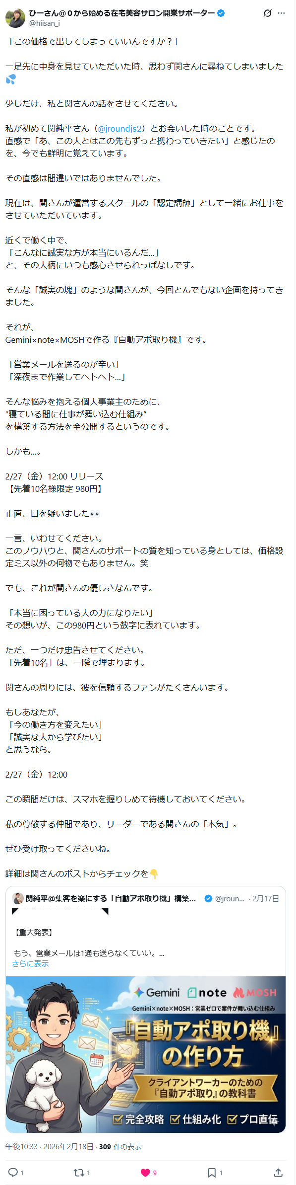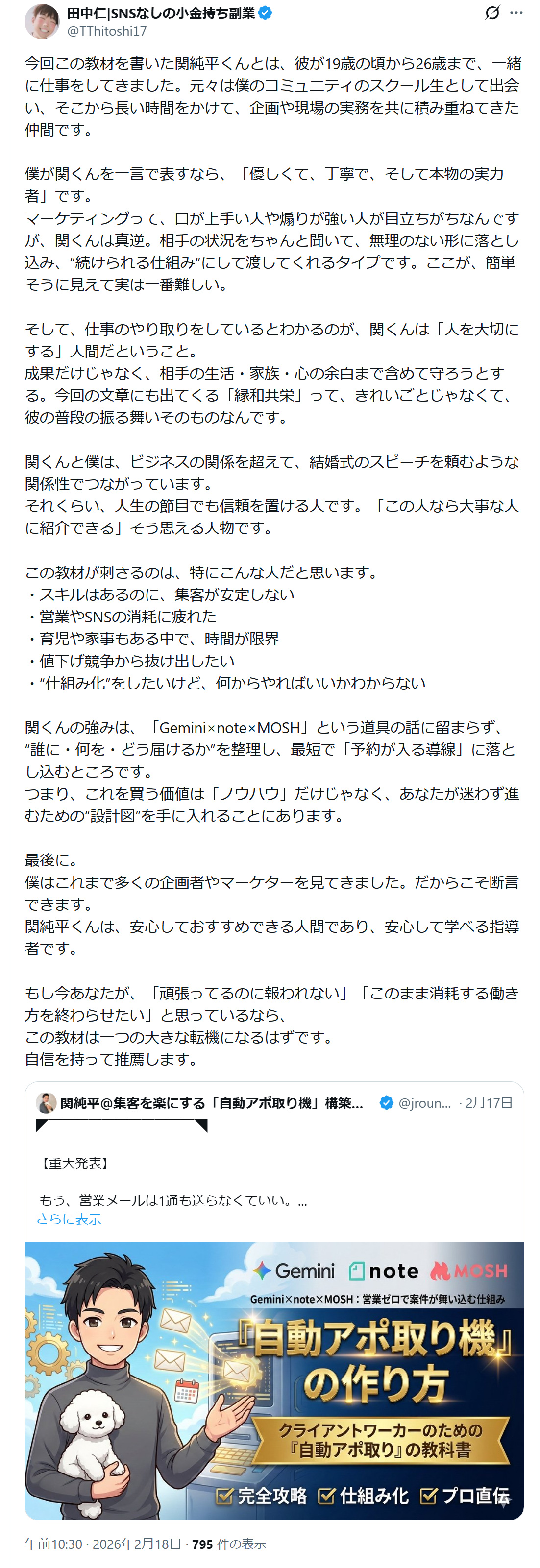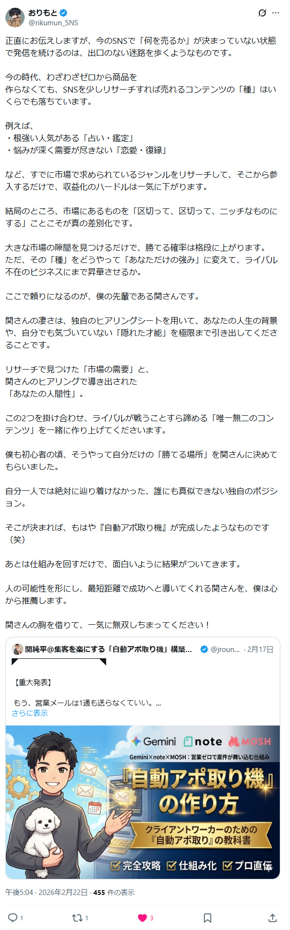 その答えが、私が提唱する【Gemini × note × MOSH】の自動アポ取りシステムです。