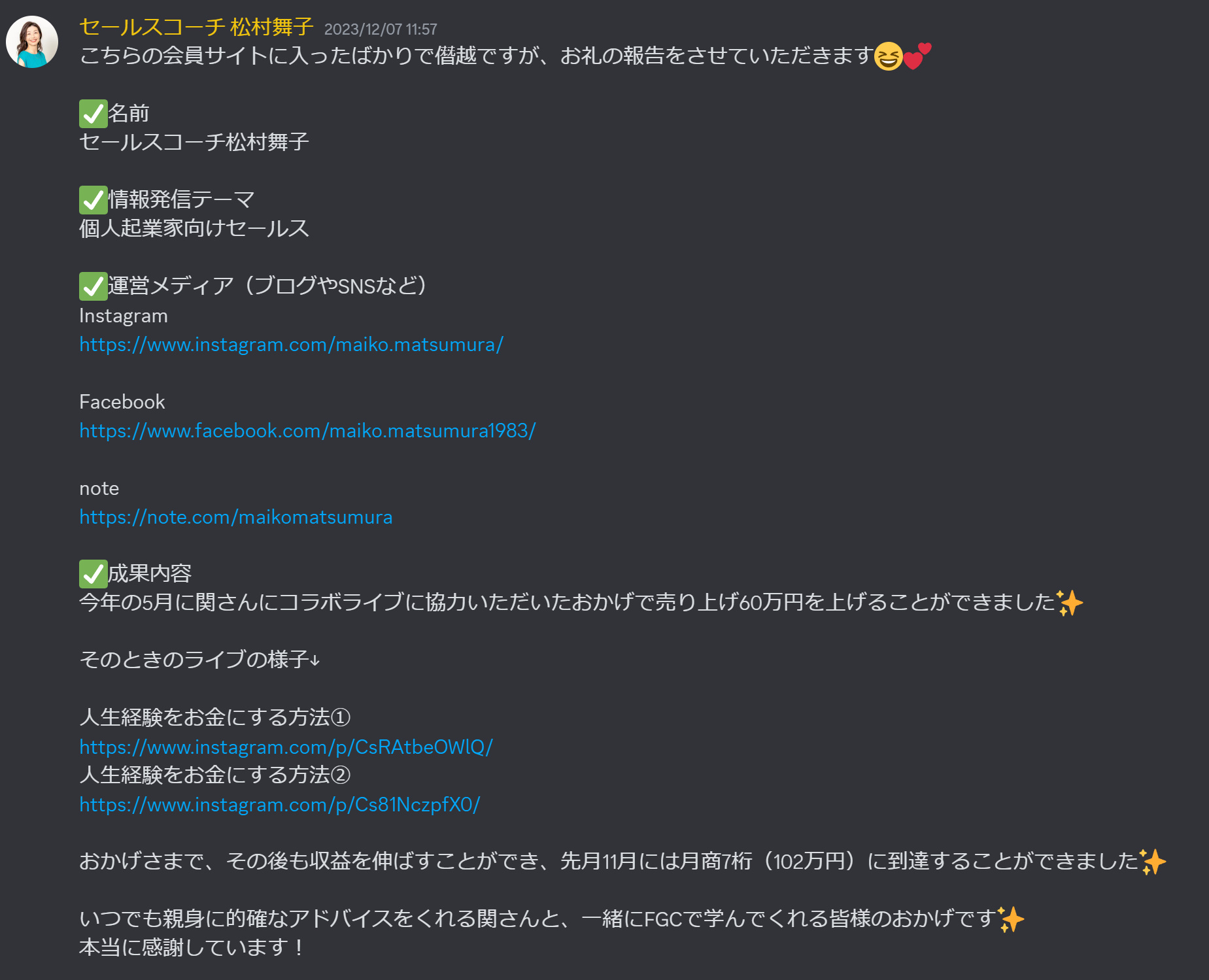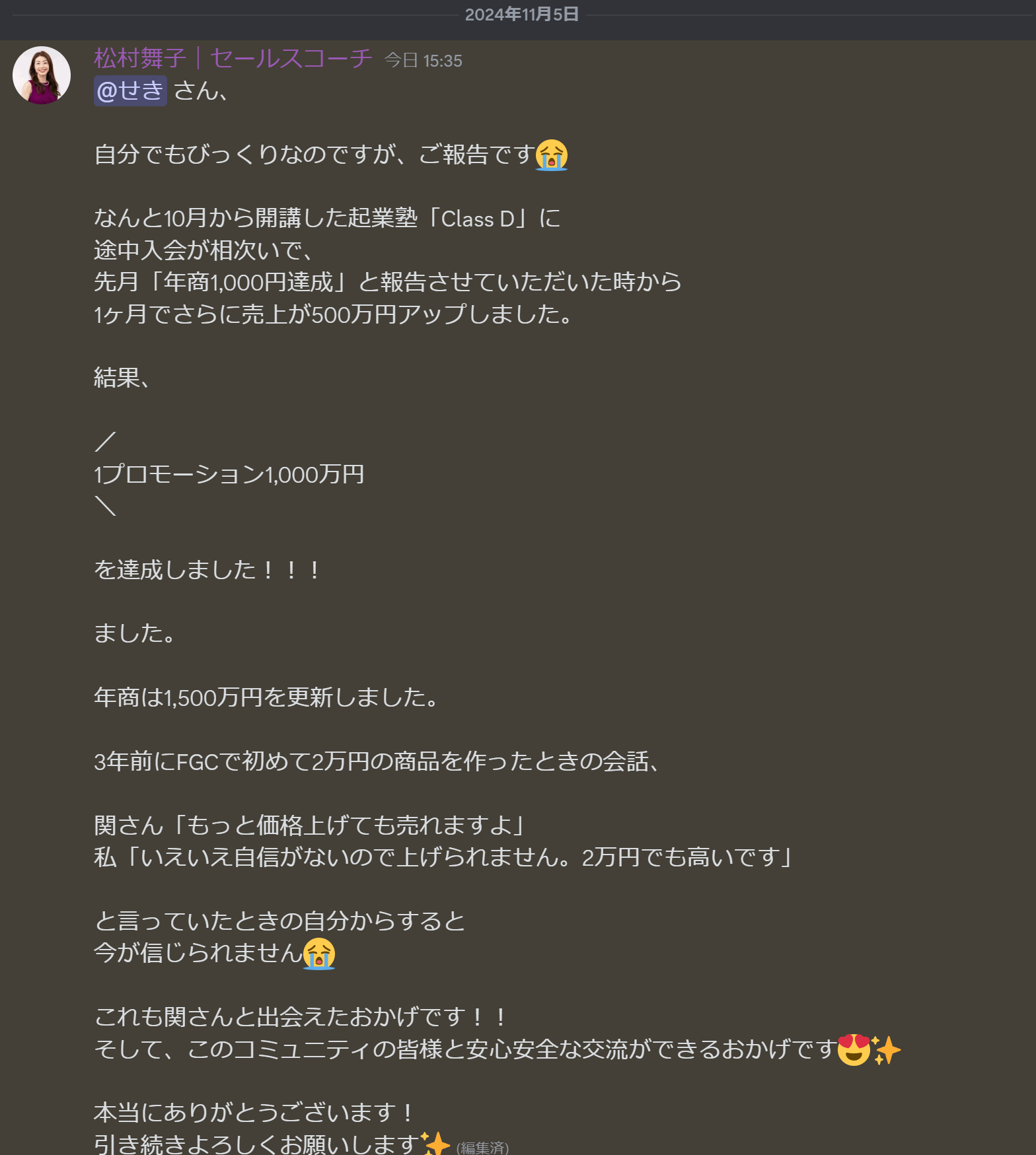 ✅セールスコーチとして独立し、月利1000万円のプロモーションに成功した方