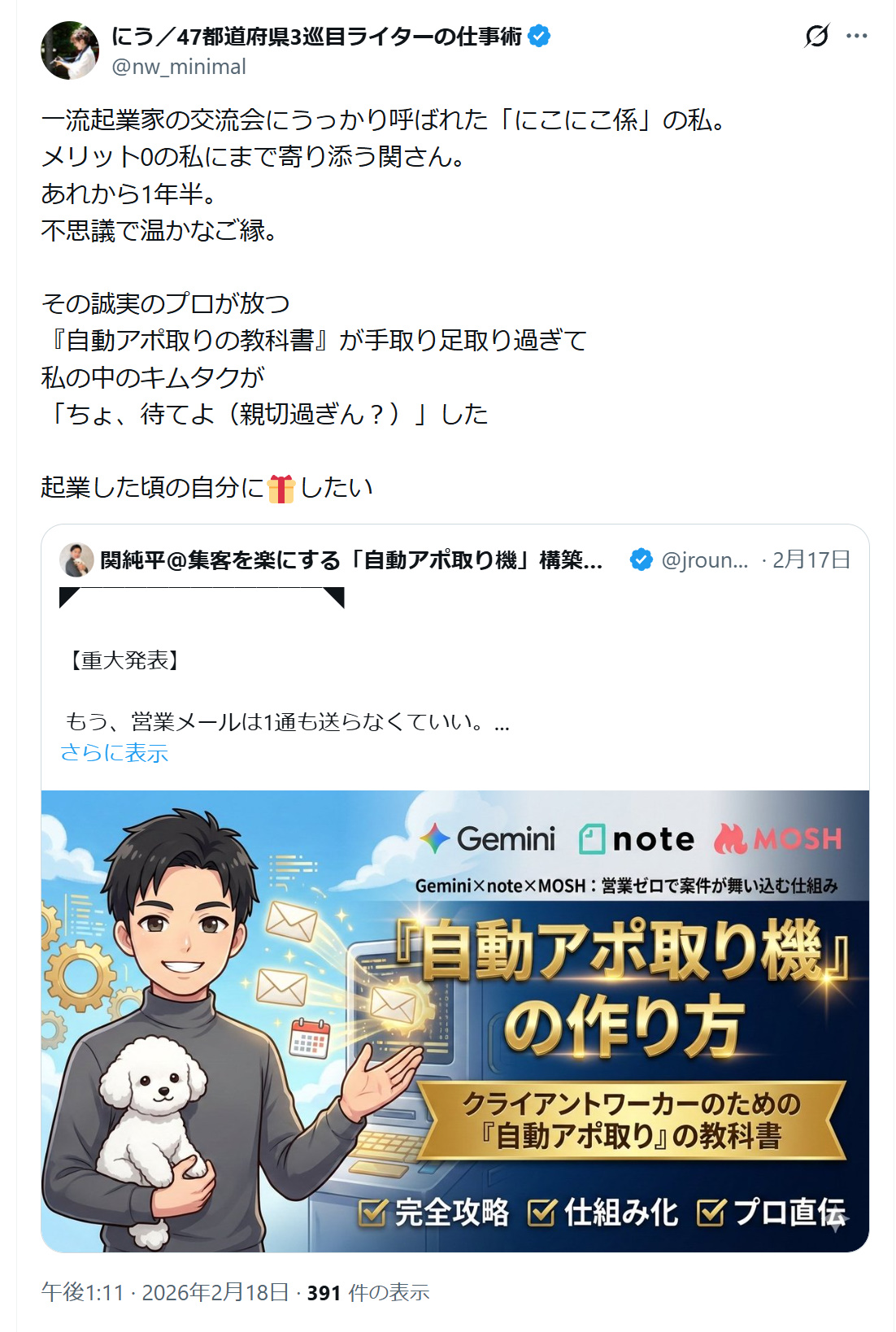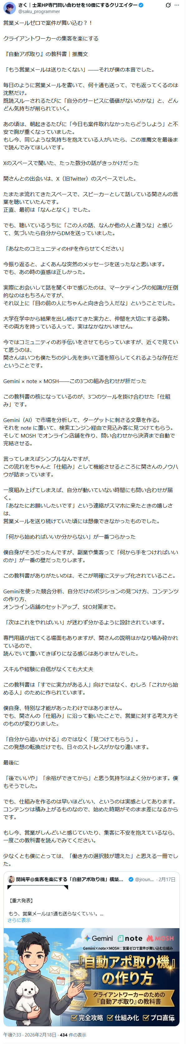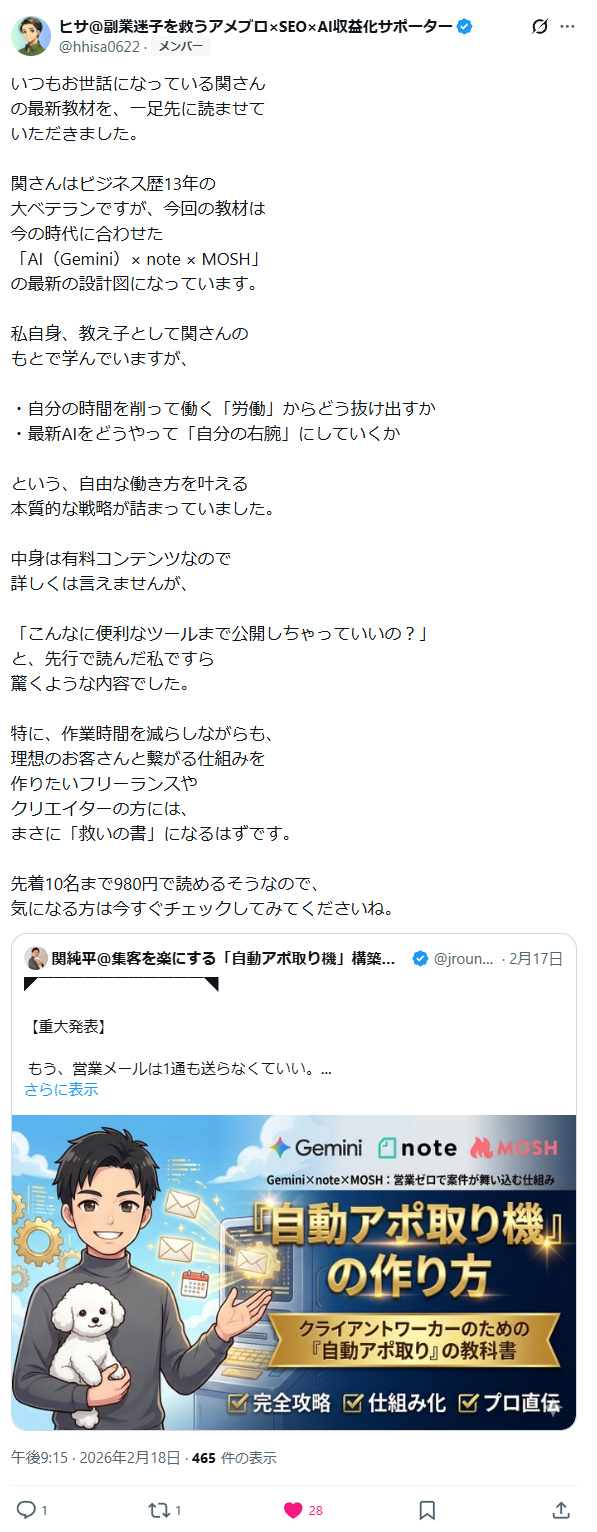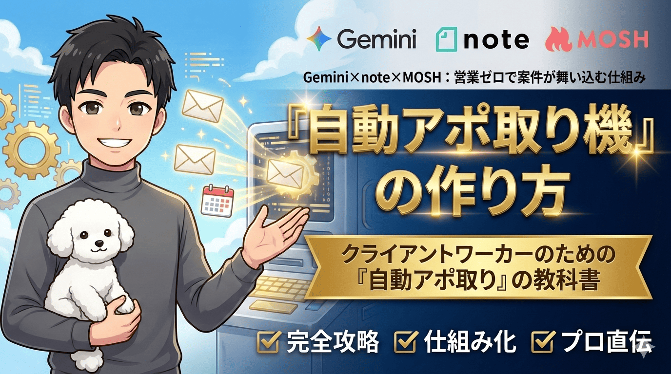 ■Gemini × note × MOSH:営業メールゼロで案件が舞い込む?!クライアントワーカーの集客を楽にする『自動アポ取り』の教科書