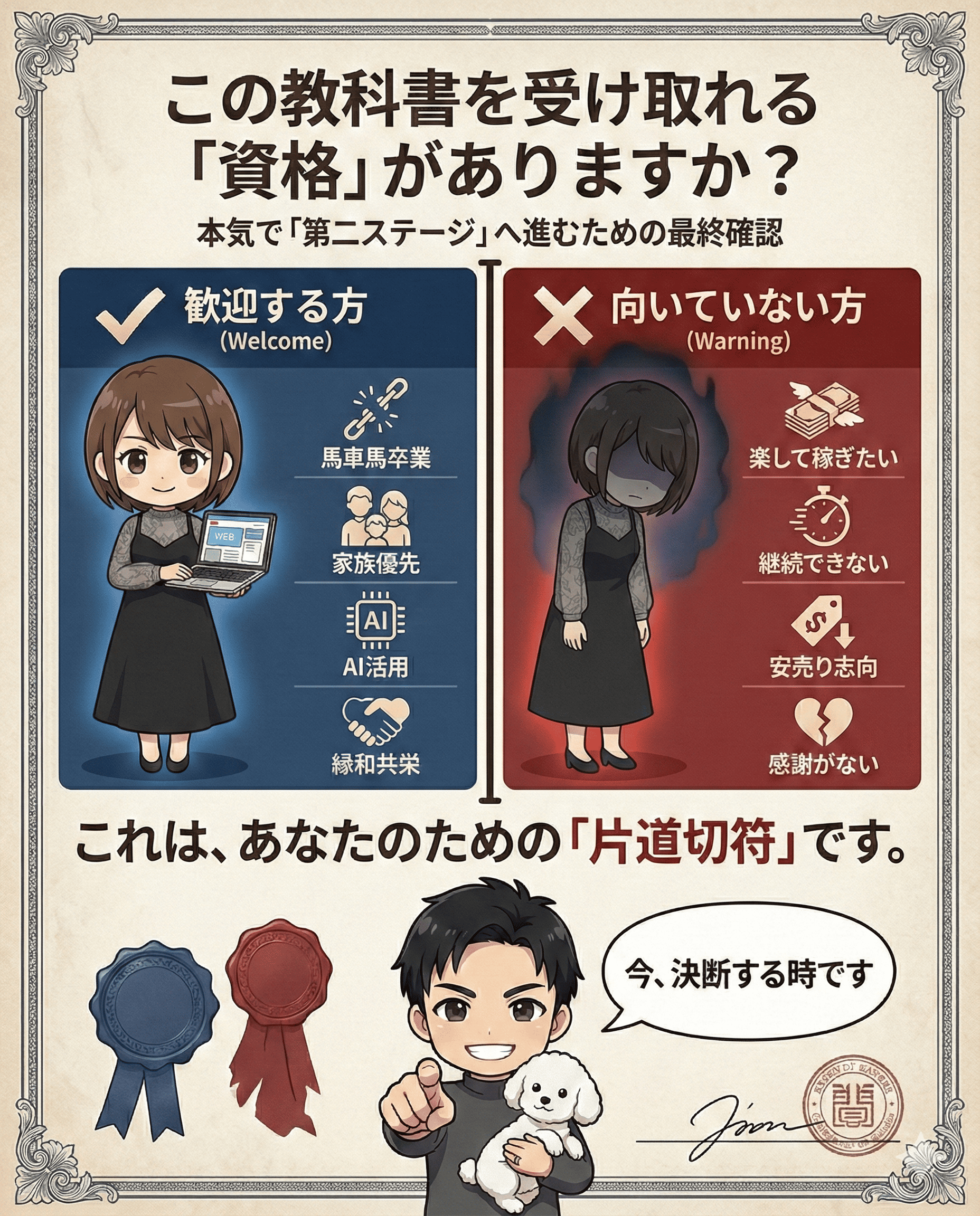 しかし、その先にあるのは「営業メールゼロで理想のお客さんに選ばれ続ける未来」です。