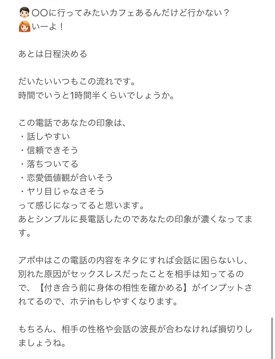アポ当日は本tipsのワンナイトシナリオ、彼女化シナリオを活用してください。