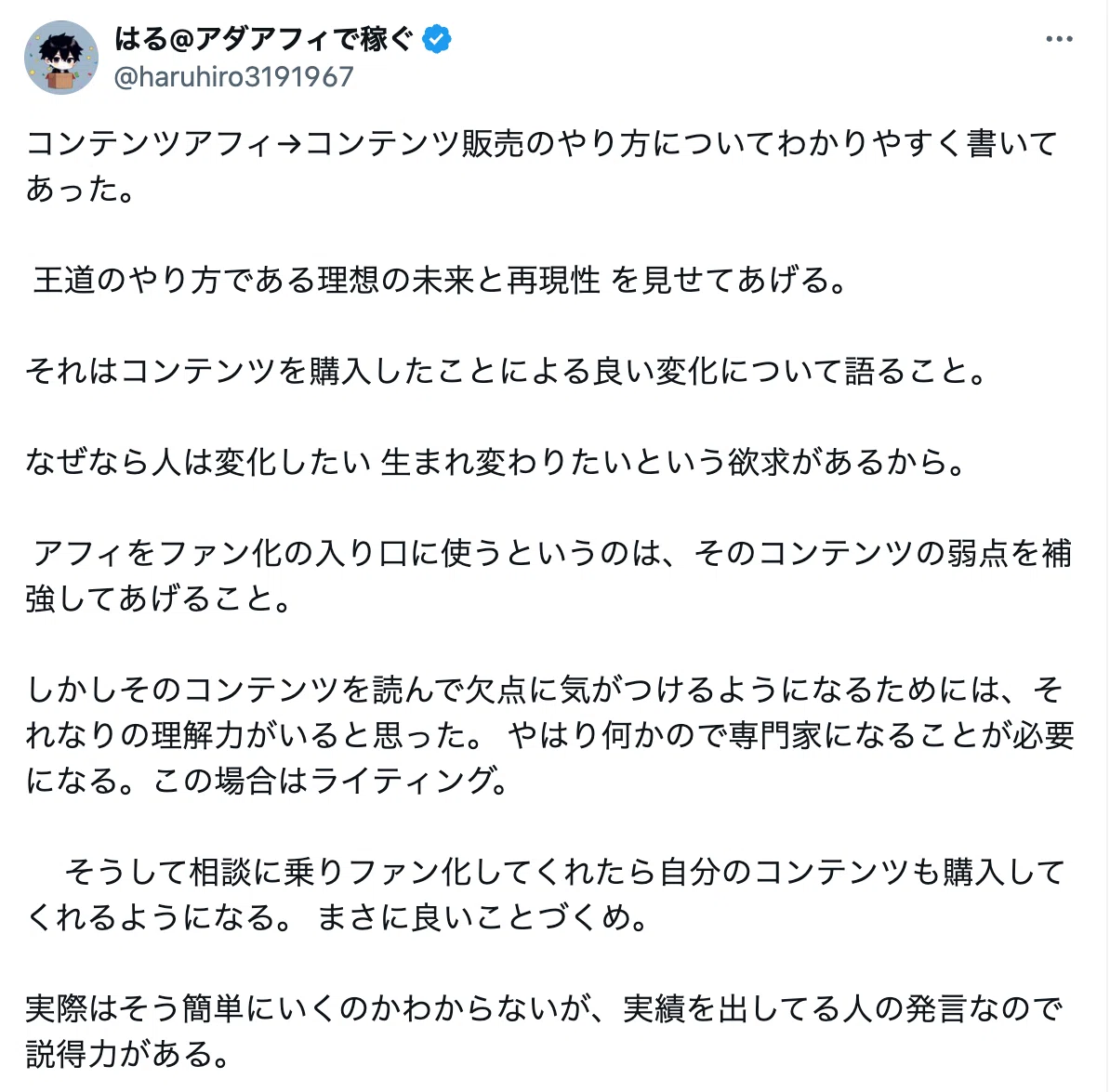 - 「アフィリエイトばかりで、人のヨイショしかしてこなかったから本当の意味で自分にファンがいない。」