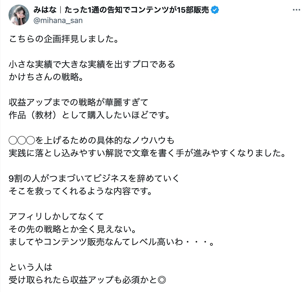 実績もできて、そのままコンテンツ販売でさらに売り上げを上げていけますからね。