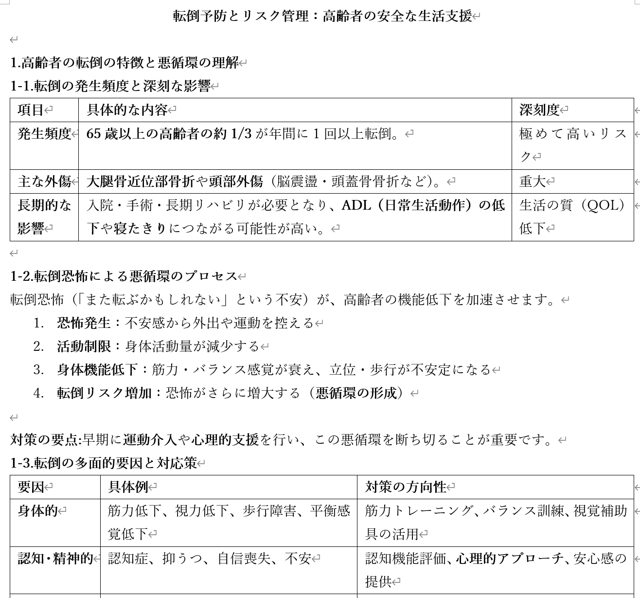 高齢者の転倒予防がテーマの看護教員用の授業案と学生用資料です。
