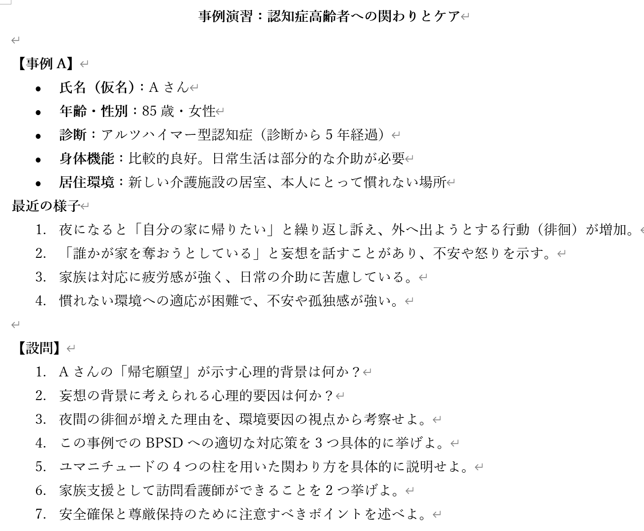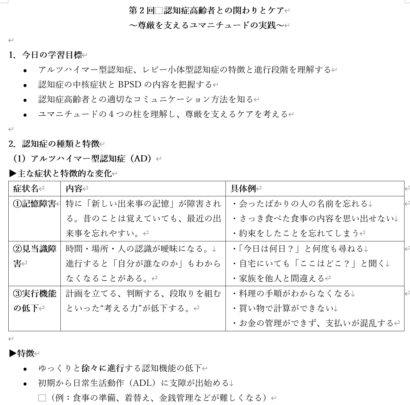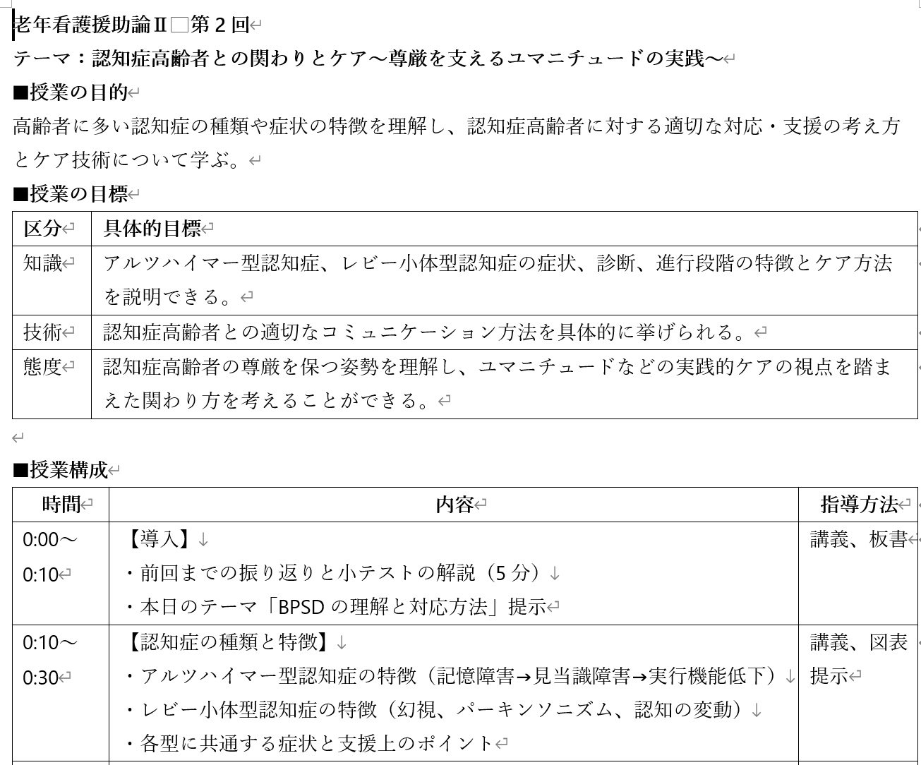「認知症ケアをもっと深く学びたい」「ユマニチュードの視点を授業に取り入れたい」と考えている看護教員が活用できる、授業案のWordファイルです。