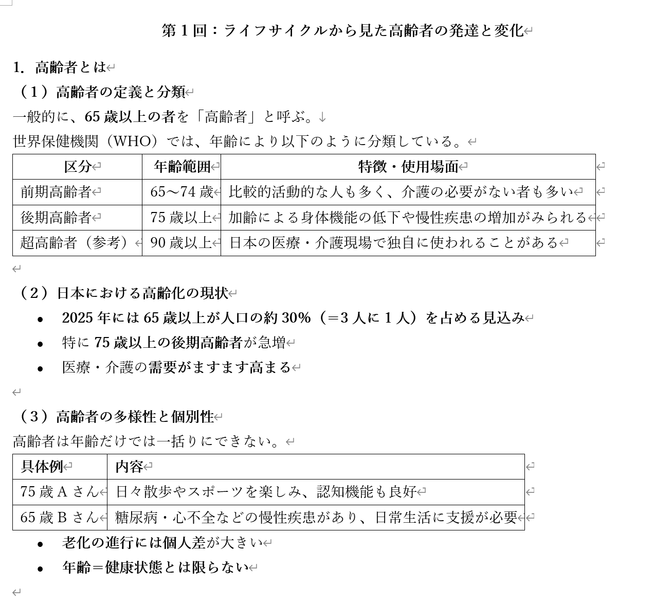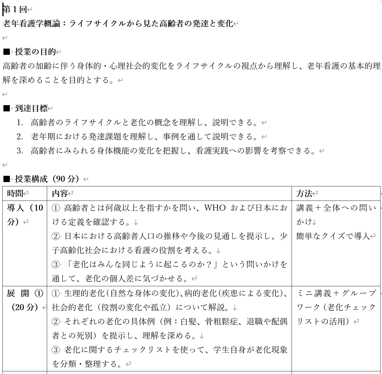 老年期の発達や身体機能の変化がテーマの看護教員用の授業案と学生用資料です。Word形式のファイルをダウンロードできます。ぜひご活用ください。