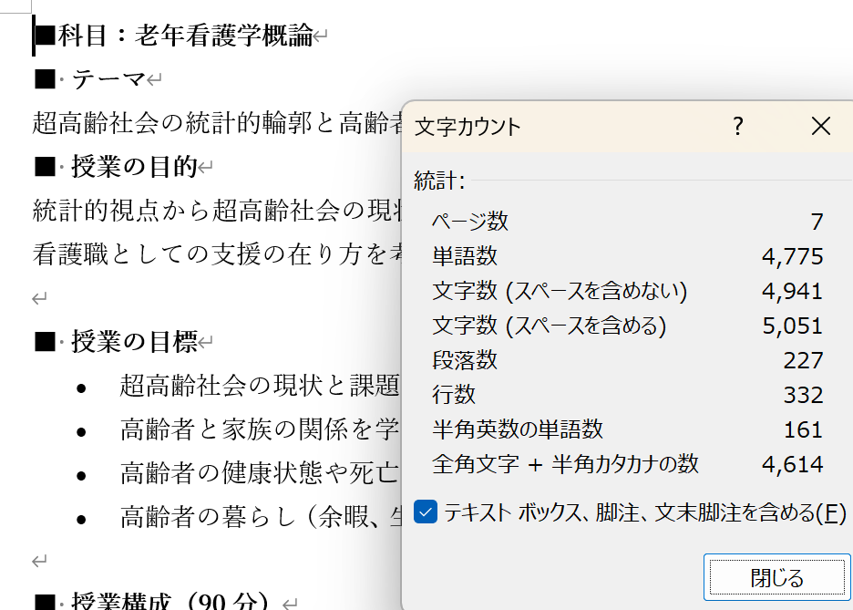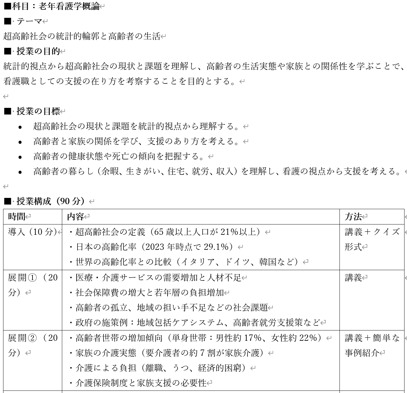 超高齢社会の統計的輪郭がテーマの看護教員用の授業案と学生用資料です。