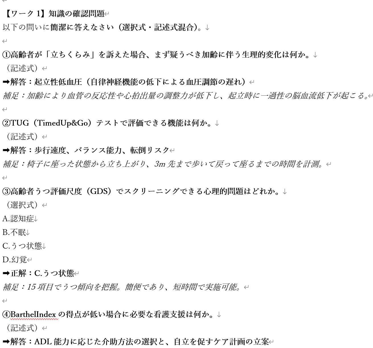 高齢者のヘルスアセスメントがテーマの看護教員用の授業案と学生用資料です。有料版はWord形式のファイルをダウンロードできるようになっています。ぜひご活用ください。