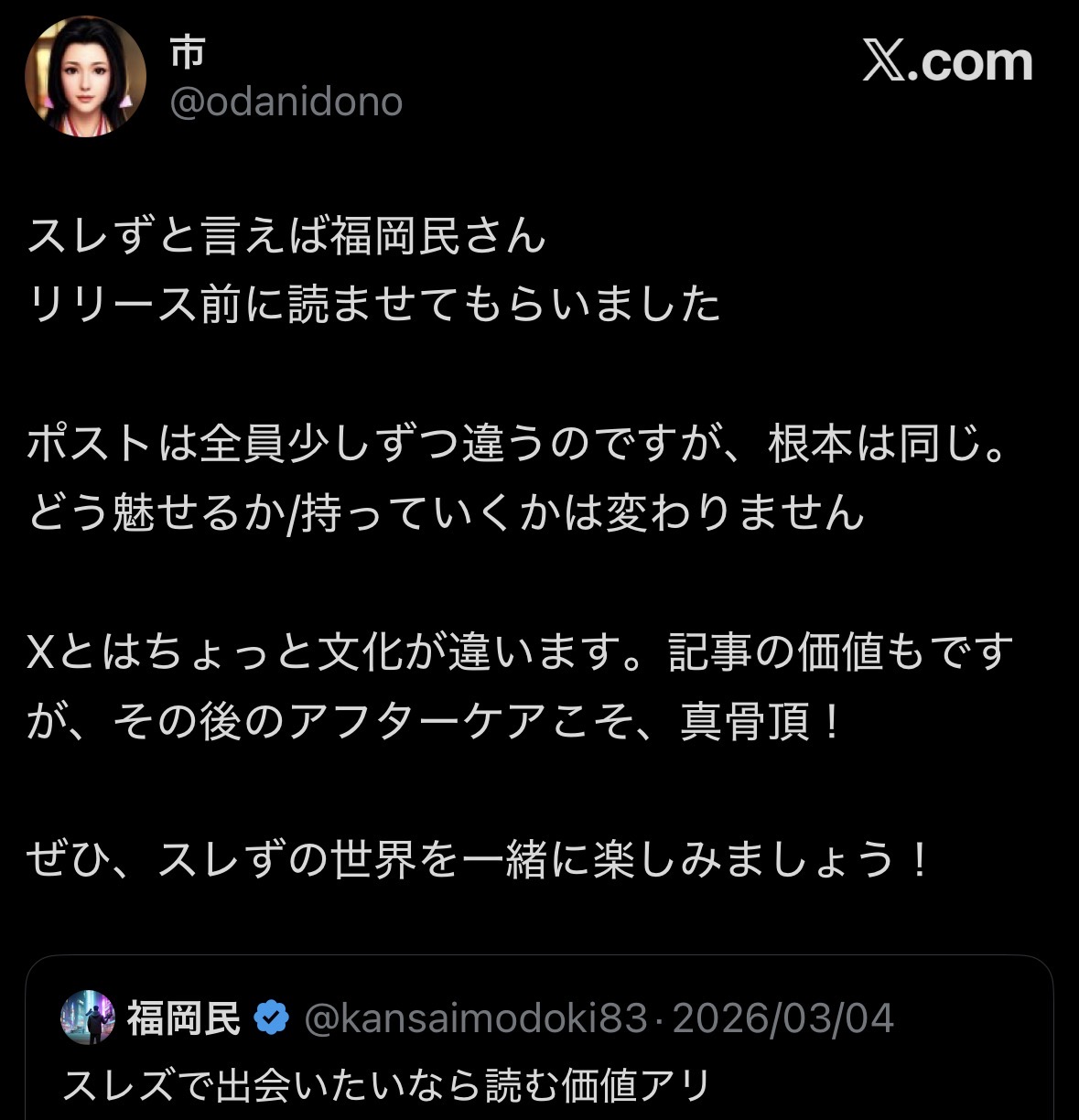 Threadsは自由度高くてフランクに発信できる魑魅魍魎の世界。色んな人がいるからこそ色んな可能性があります。僕からすると、Threadは会えるSNSです。運用さえしっかりすれば、良い思いができるはずです。