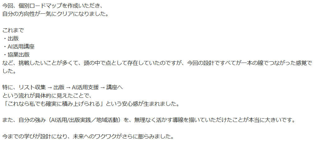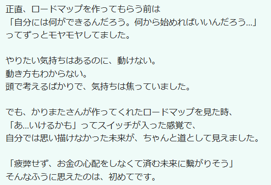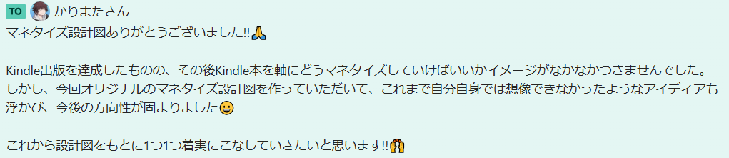 この『マネタイズ設計図』を作成した方からはこのような感想をいただいています。