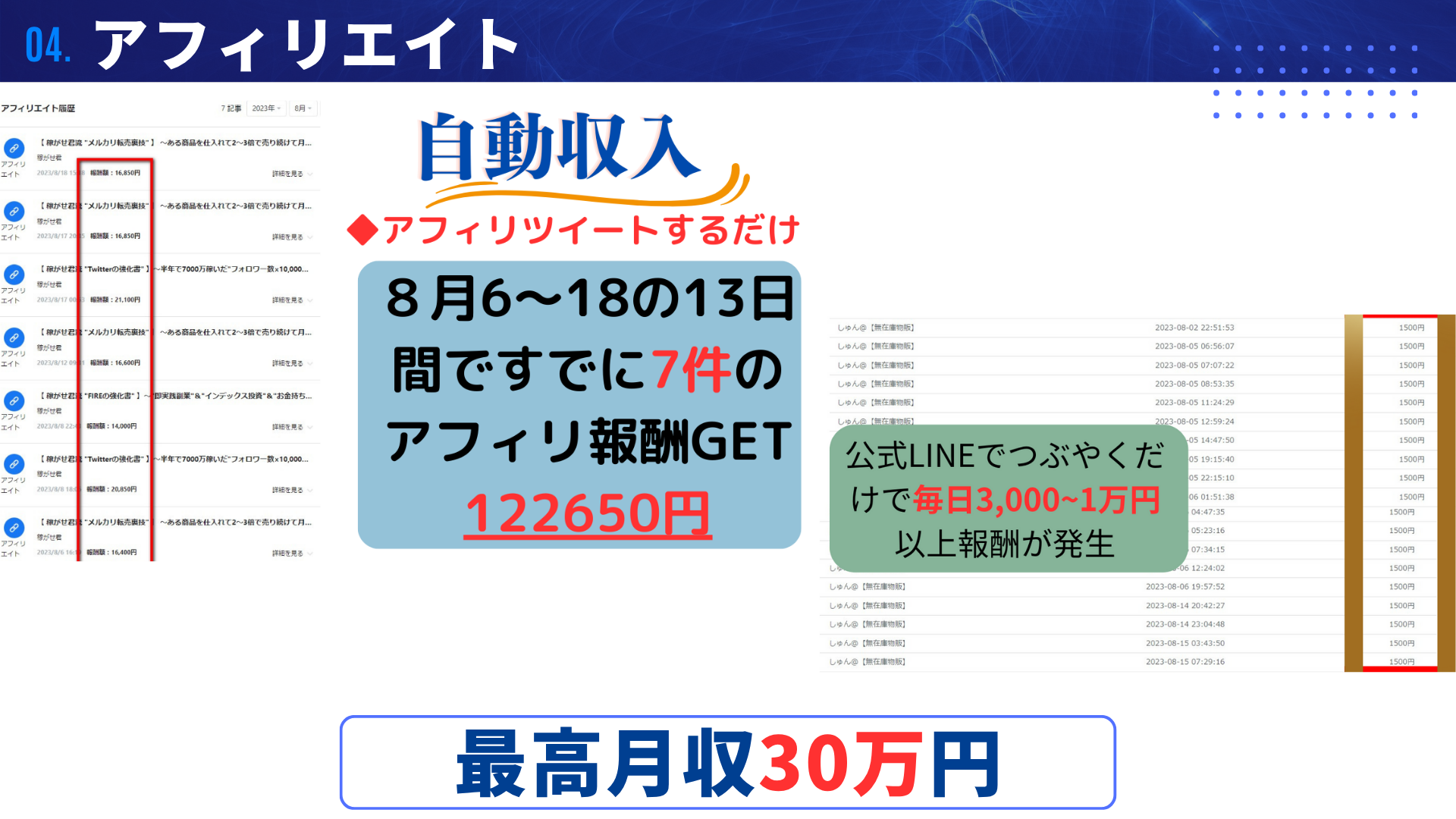 物販、アフィリエイト、仮想通貨投資の3ジャンルをもれなく収録しています。