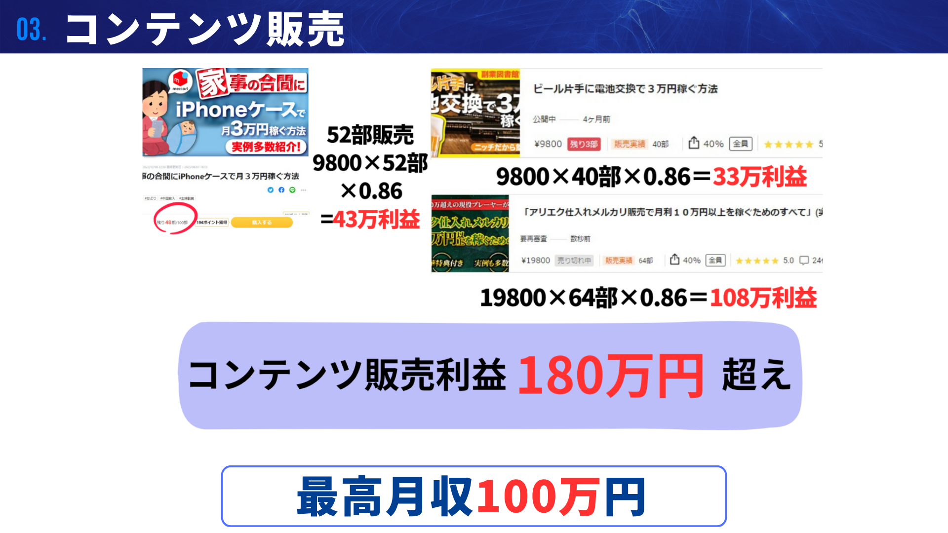 物販で月5万円を安定的に稼いだら、そのノウハウやビフォーアフターをまとめてコンテンツ化。