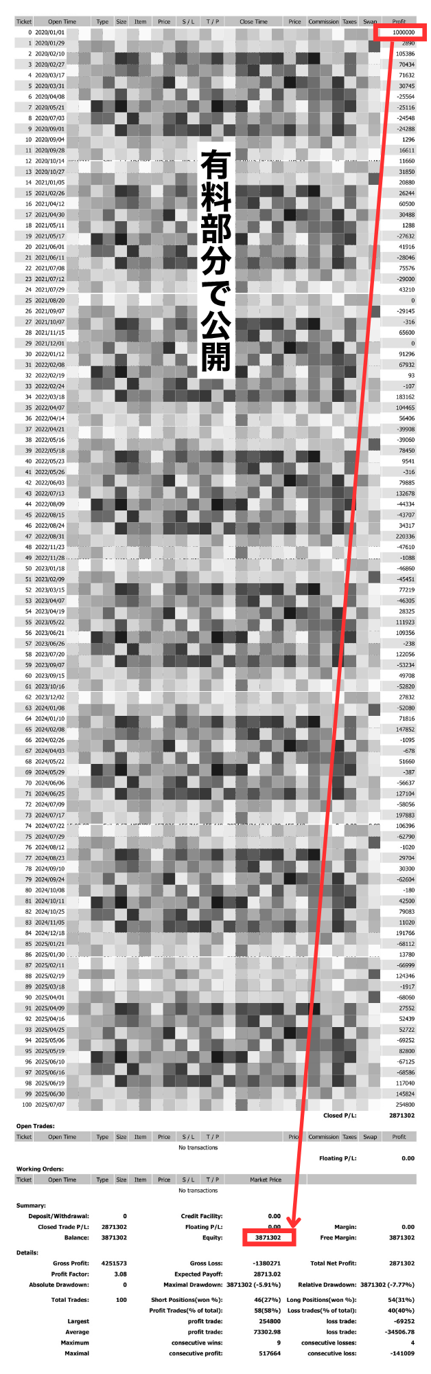 ①100の過去検証取引データ