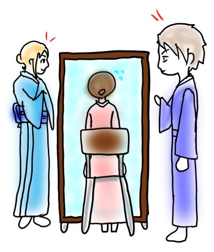 気づけば、左右に人がいる。正面には鏡。後ろは椅子の背もたれ。体を引く余地が、ない。