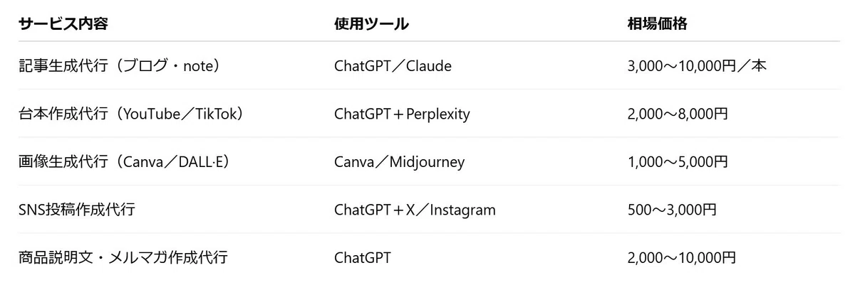 こうした“時間がない人・作業が苦手な人”に代わって、AIを使って代行するのがこの仕事です💡