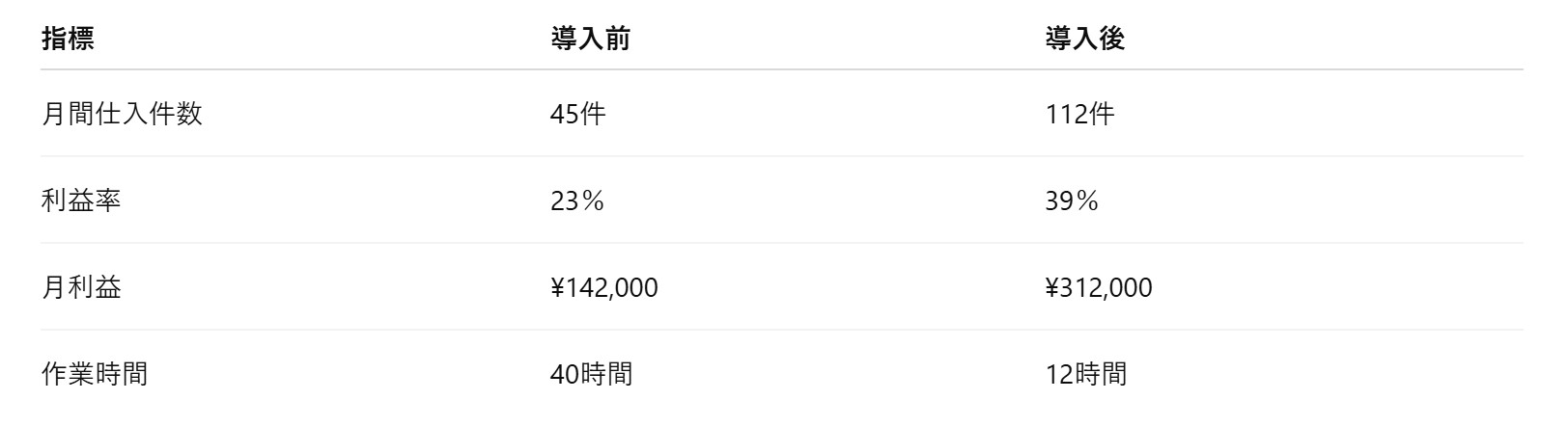 僕が最初にAIを組み込んだとき、1晩で仕入れ候補200件を自動抽出。