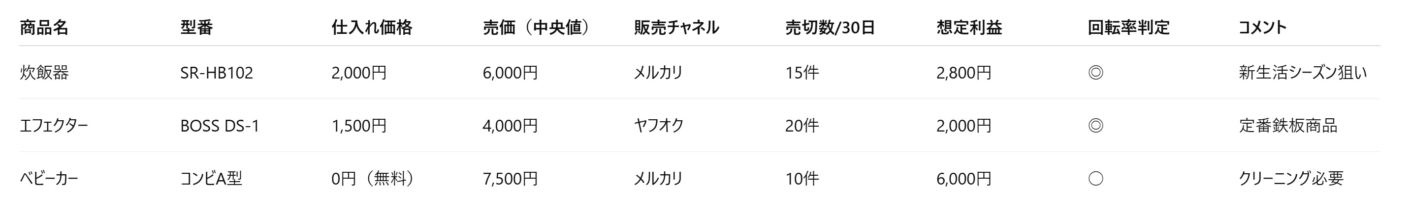 👉粗利3,000円以上&30日以内に売れるを最低ラインにすること。