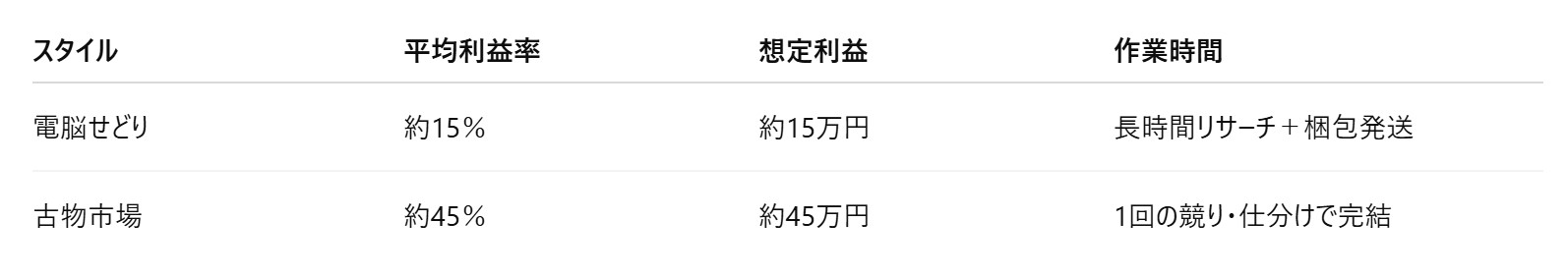 🧩 「古物市場=せどりの上位互換」