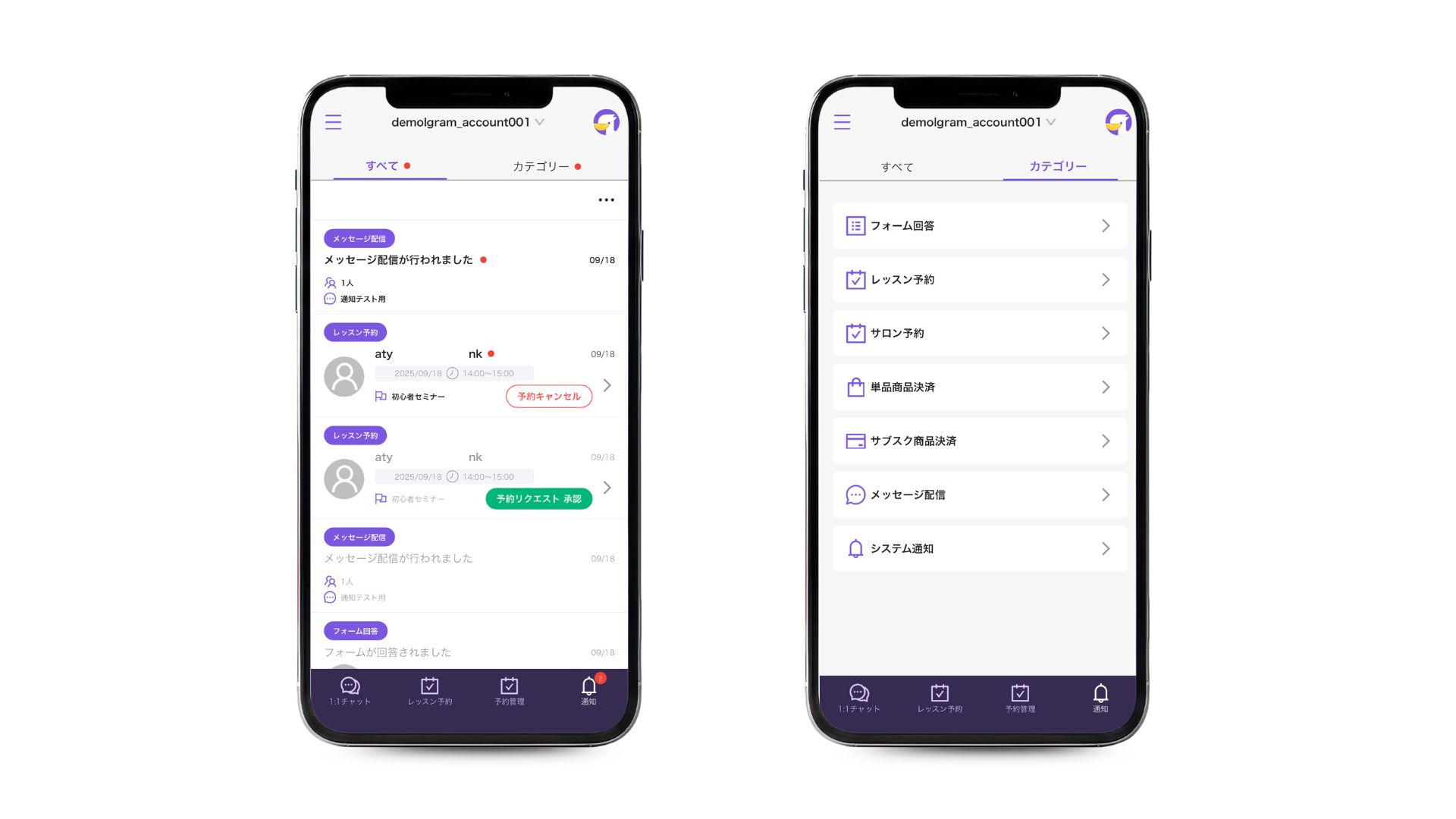 新たに「通知機能」が実装され、Instagramアカウント上でのコメントやDM、予約、投稿配信、フォーム送信、商品販売といった多様なアクションをリアルタイムで把握できるようになりました。