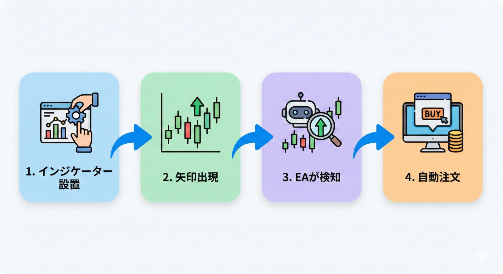 寝ている間も、仕事をしている間も、家族と過ごしている間も、あなたのインジケーターが出した矢印を、EAが黙々と拾ってくれる。