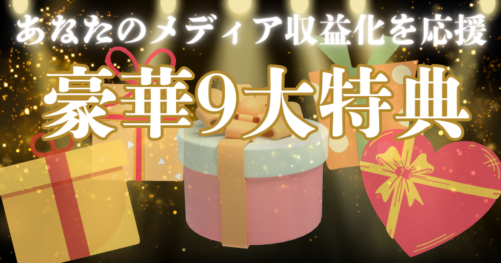 そのため、豪華8大特典、さらに条件をクリアすることで、もう1つの特典、全9点の特典をおつけしました。