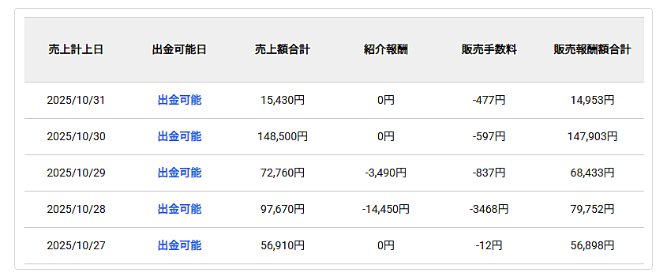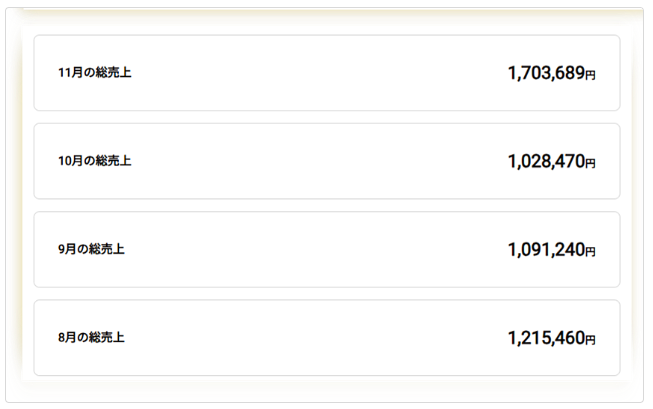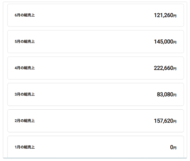 別のアカウントでも初月から5か月連続で10万越えの売り上げを達成できました。