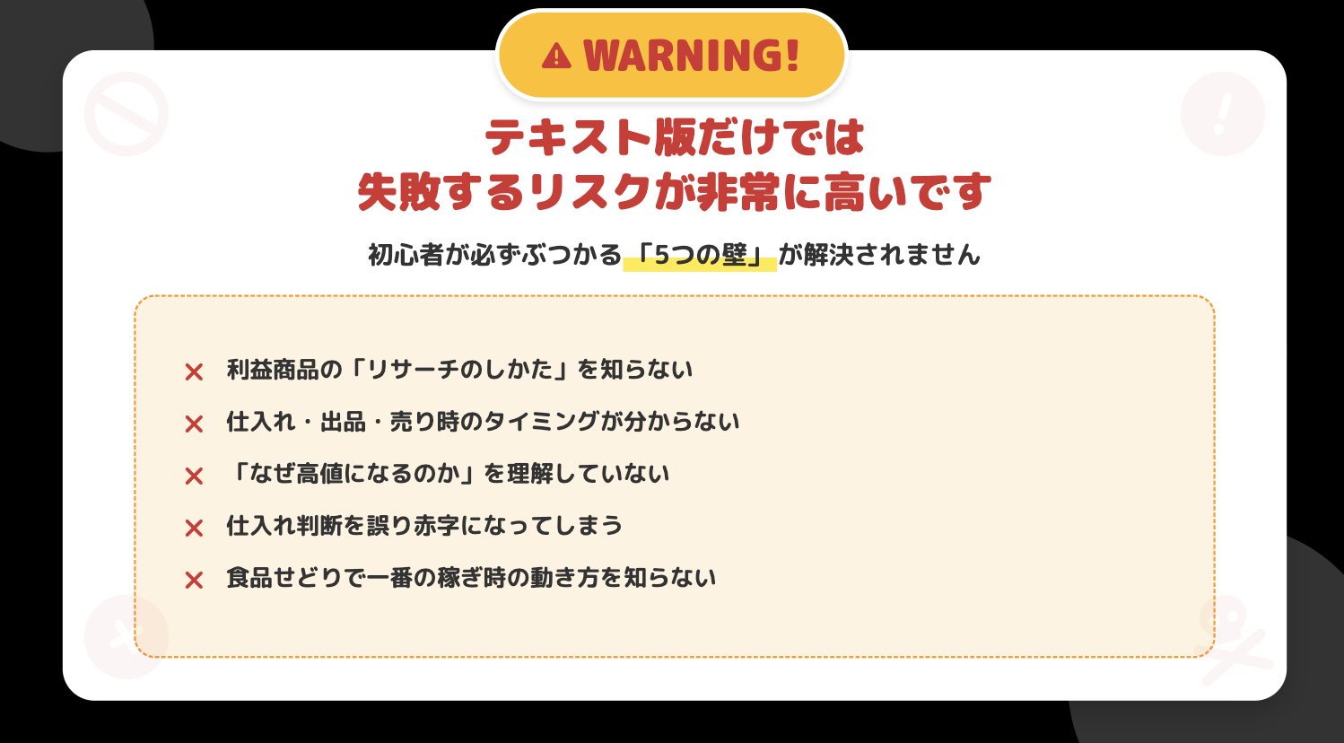 ❌ 食品の高値要素がわからず高利益商品をスルーしてしまう