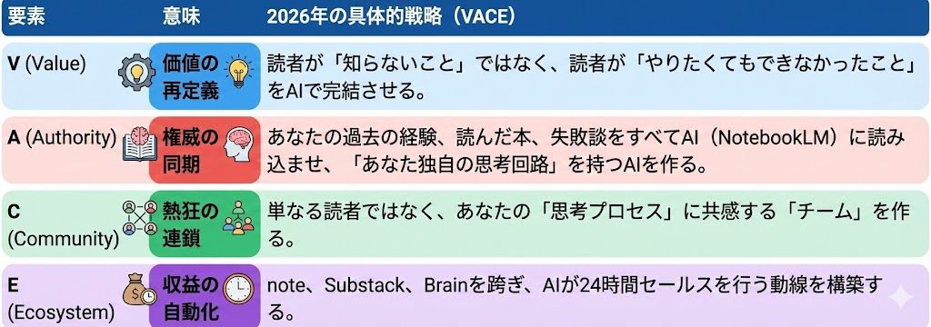 2. 専門知識:2026年の勝ち型「V-A-C-Eフレームワーク」