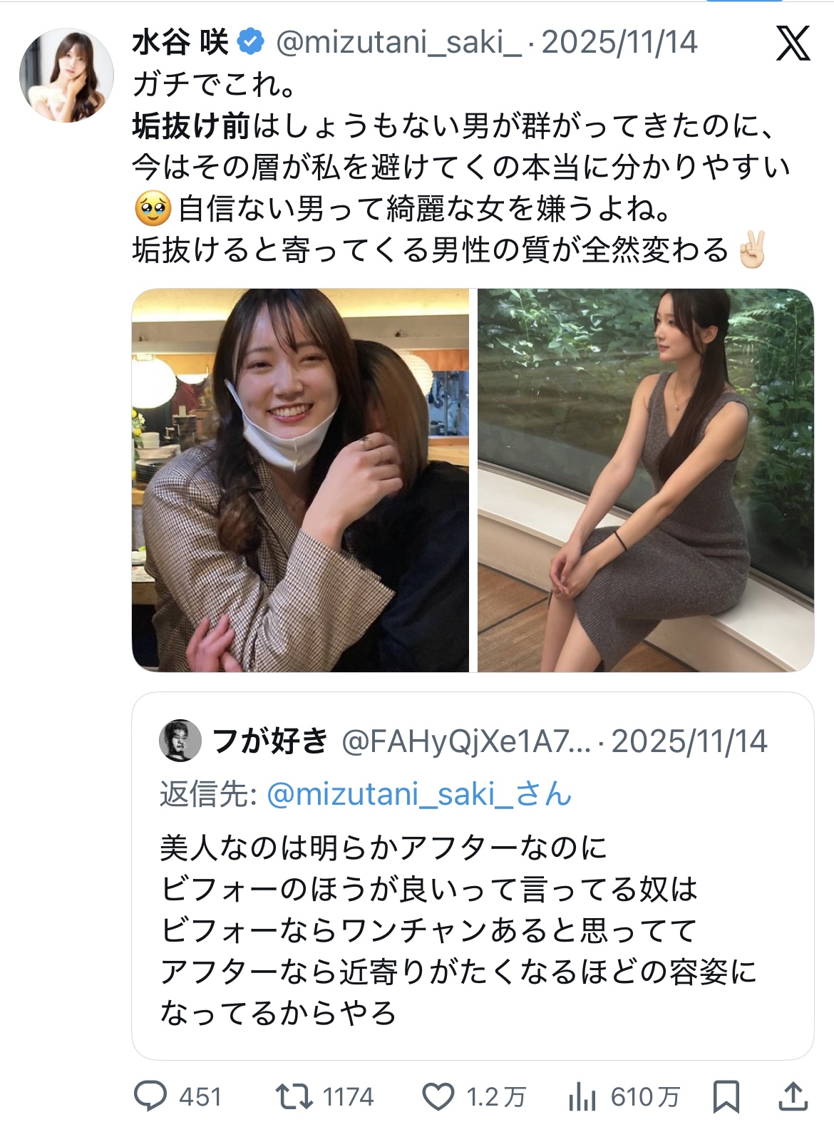 このポスト以外にも女性インフルエンサーの投稿に対して、整形前の方が可愛い、垢抜ける前の方が好き、などのポストがよく話題になっていますよね?