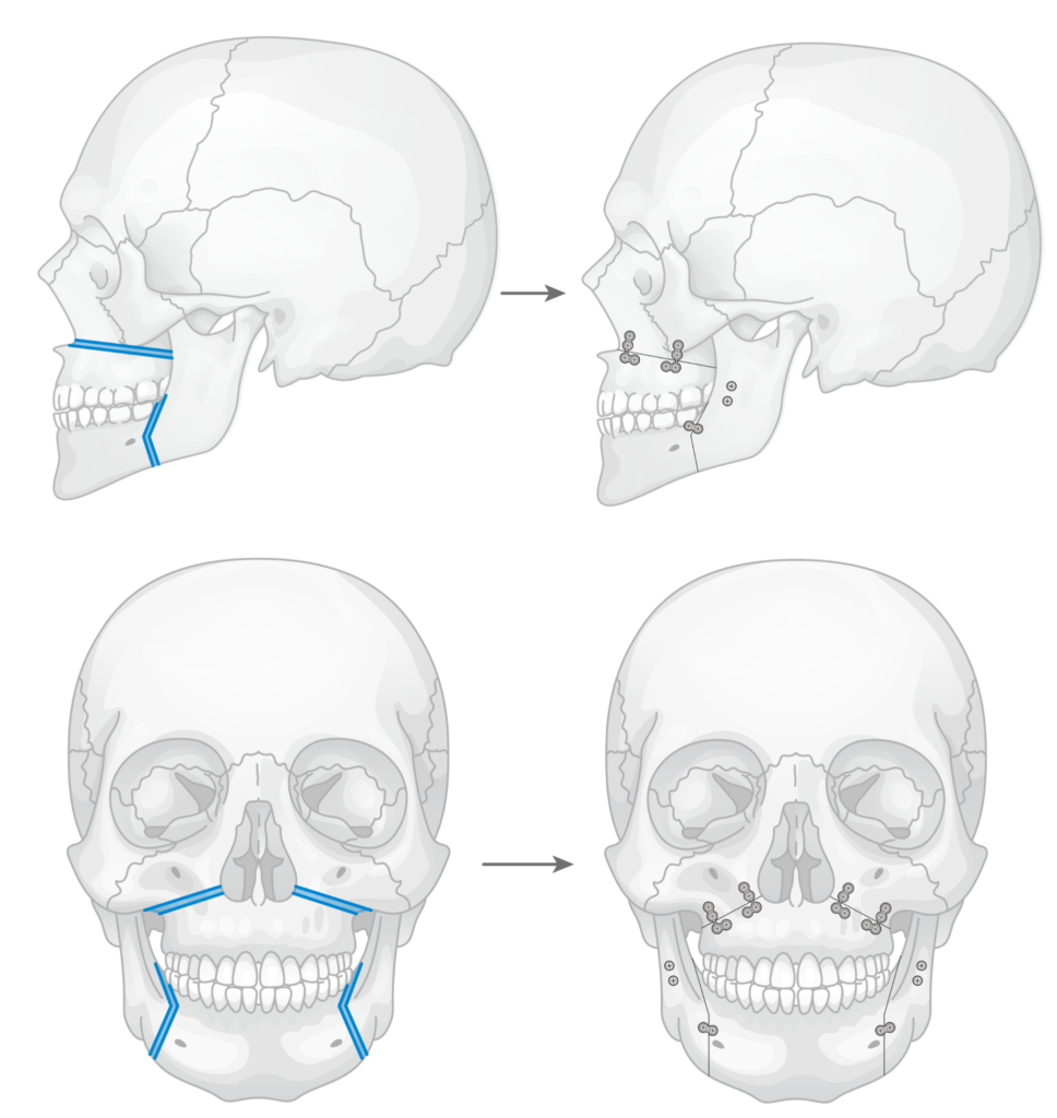簡単に説明すると中顔面の骨をだるま落としのように切り落として顎の角度を整える骨切りの一種です。