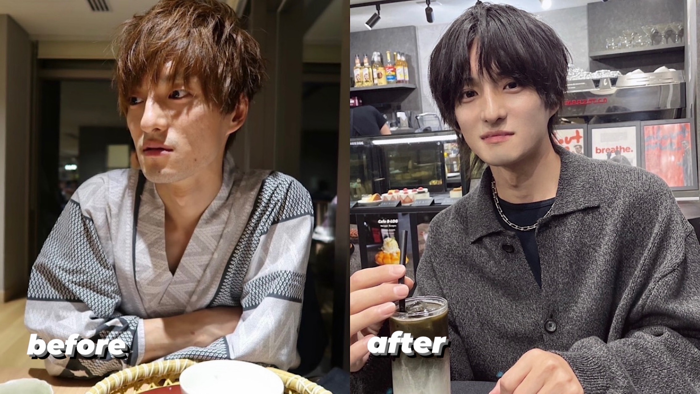 疲れたサラリーマン風の容姿から色気ダダ漏れのイケメンへ