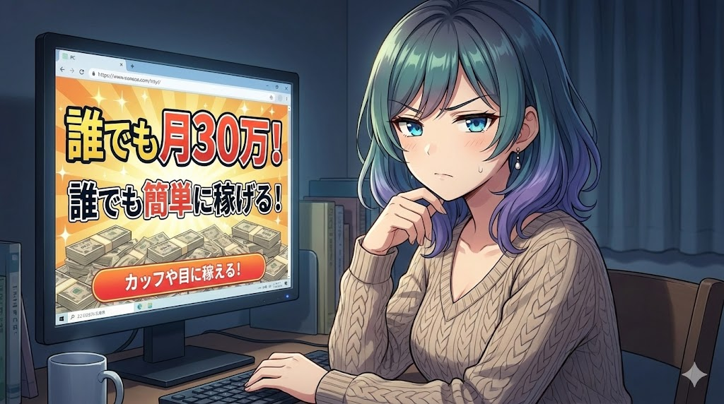 そんな不安を抱え、副業を始めるためにネットで検索する初心者を、甘い言葉たちが待ち受けています。