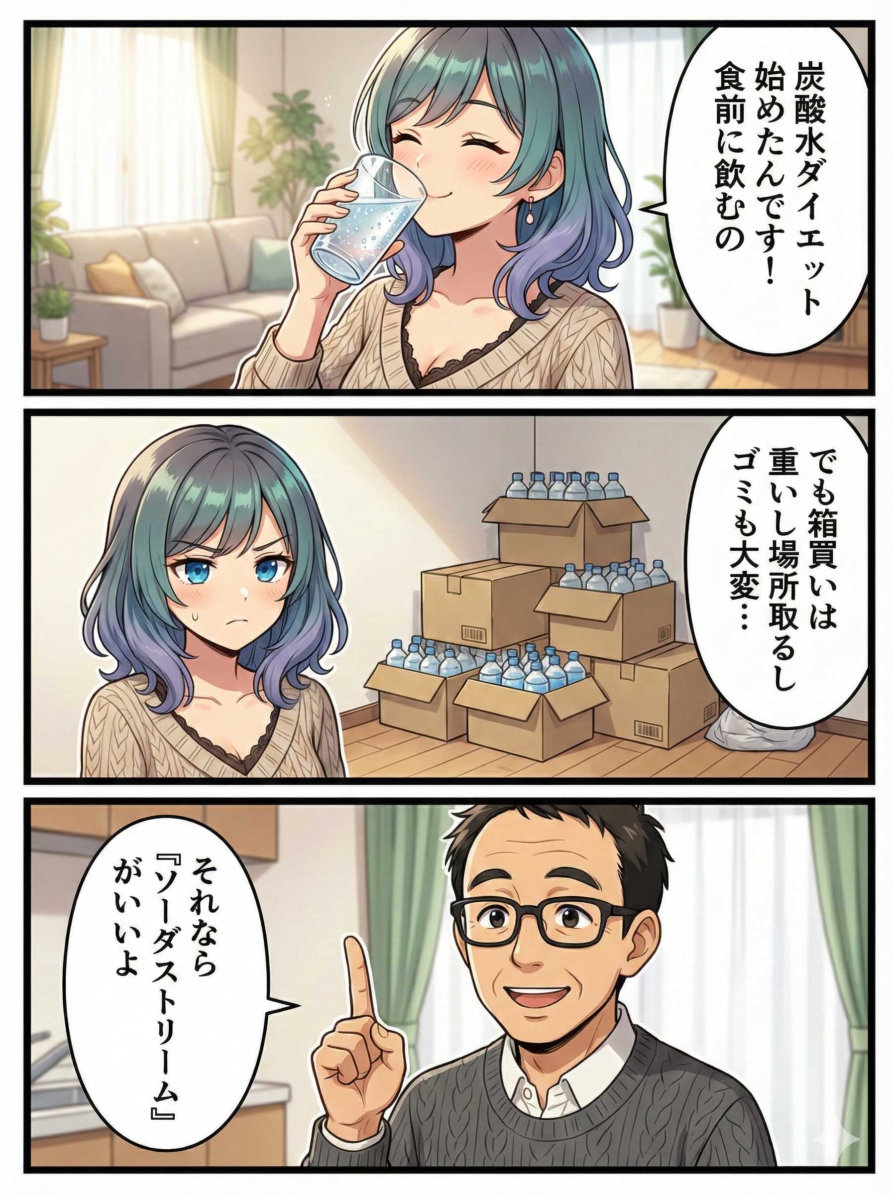 - ストーリー丸投げ: 「ダイエットの失敗談を描いて」と箇条書きで伝えるだけ。作成されたネームを議論しながら仕上げます。