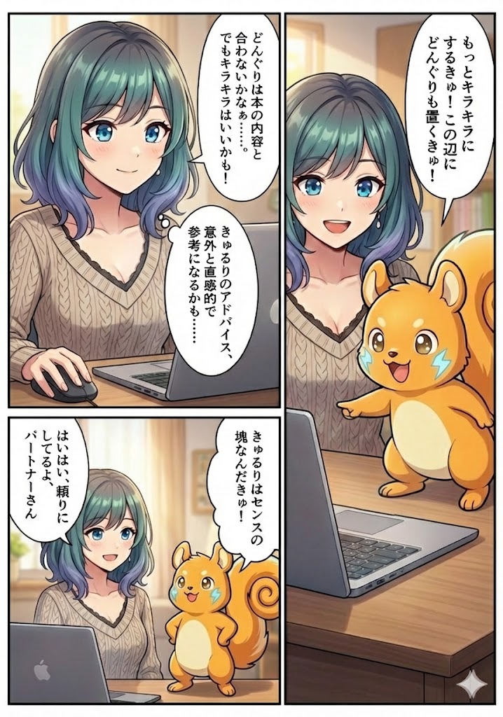 - ツール地獄の往復: 画像生成AIで絵を作り、Canvaでキャラを配置し、さらにフキダシを入れ・・・