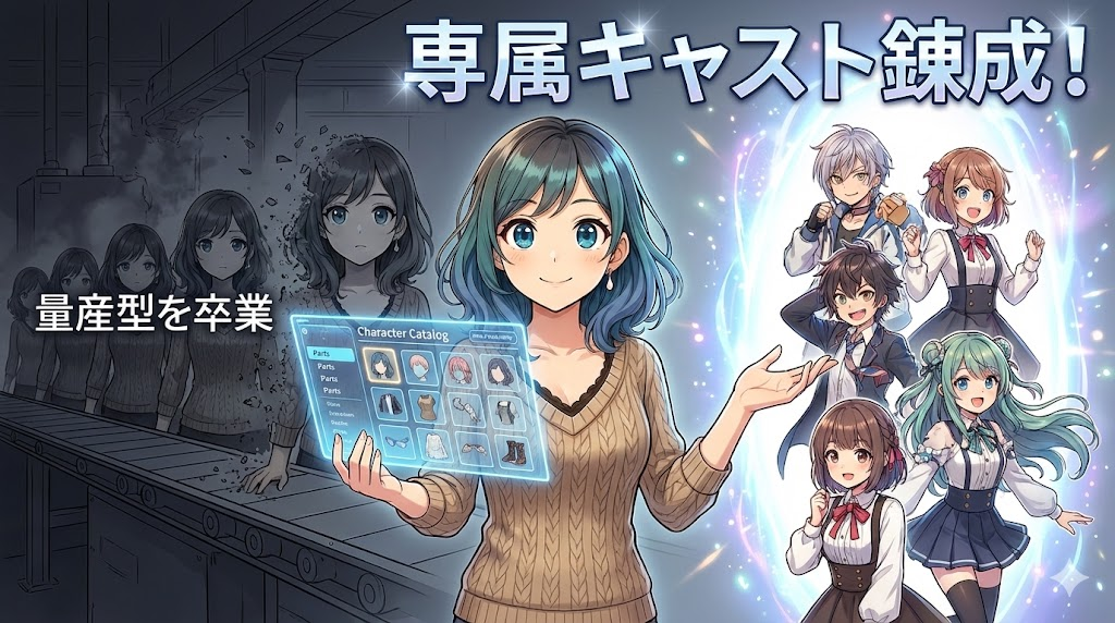AIガチャに頼って量産型キャラを創るのは、もう終わりにしましょう。 カタログからパーツを選び、論理的にキャラクターを構築する。 「誰でも創れる時代」だからこそ、**「あなたにしか創れないキャラ」**を持つことが、最大の武器になるのです。
