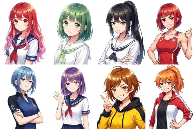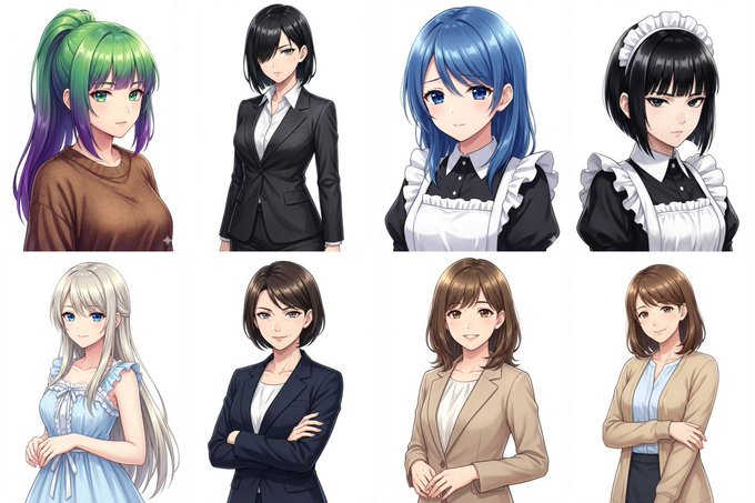 そしてこのGemを使って描き分けたのが下記のキャラ達。これまでの私のAIガチャ運ではこれだけのキャラを描き分けることはできませんでした。どれも主人公級の出来です。
