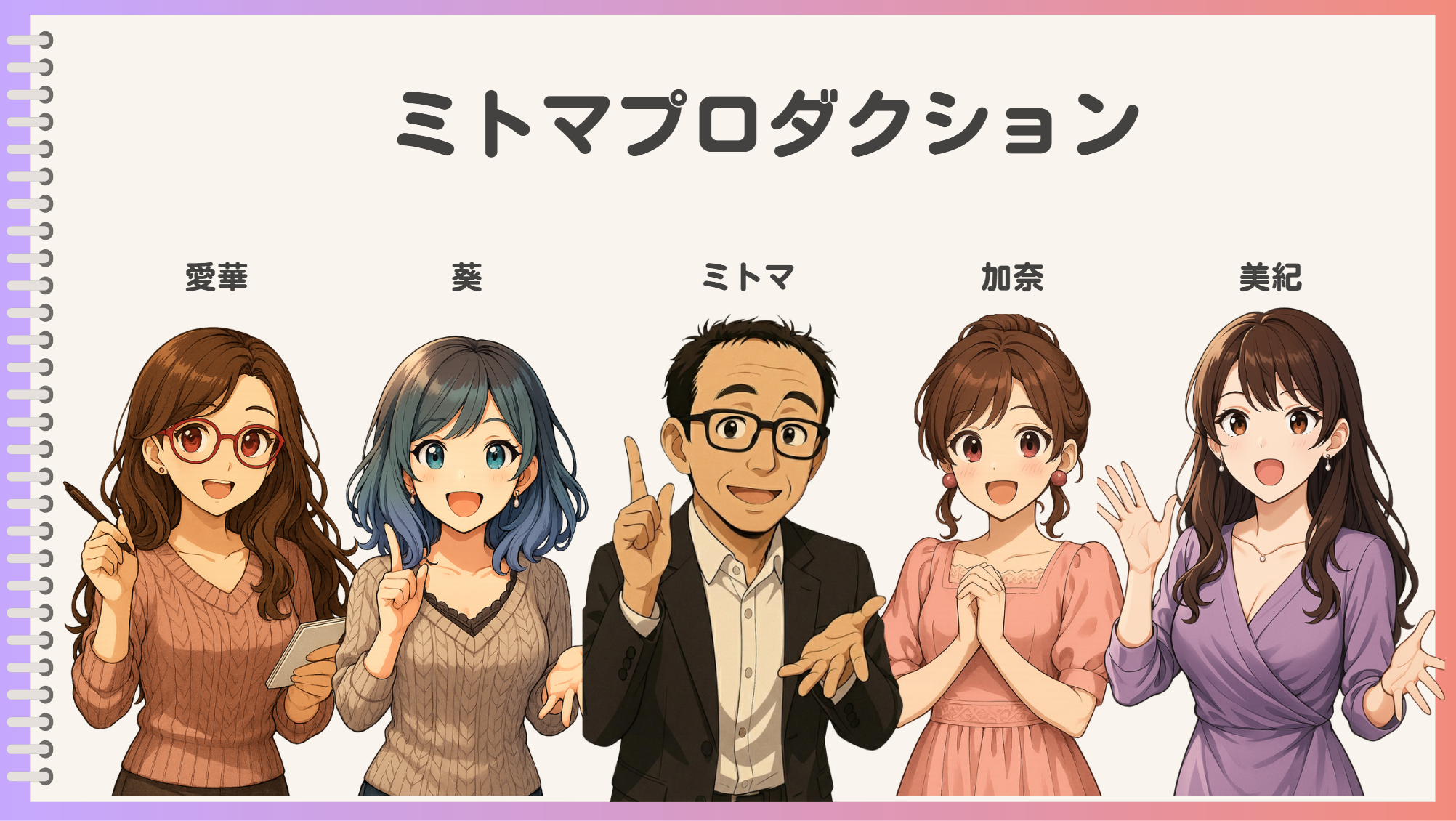 私も4人のキャラを名前を付けて愛着をもって活用しています。特に「葵さん」は私のSNSやTipsなどで大活躍していて、ミトマの代名詞とも言えます。