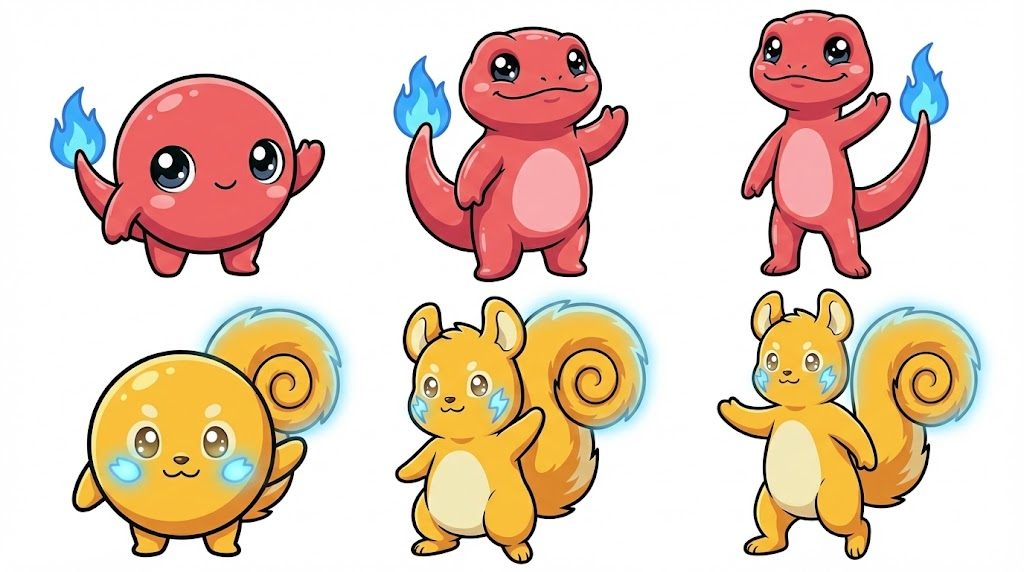 1頭身、2頭身、3頭身で設定すると、進化するポケ〇ンみたいに描き分けることができます。