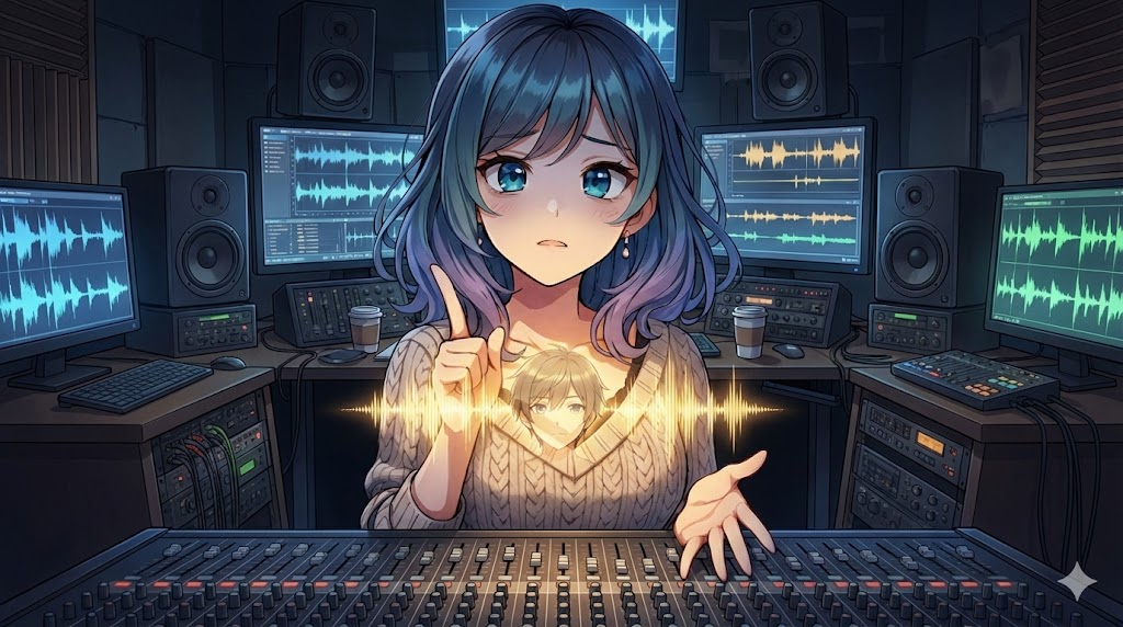 そしてついに、スピーカーから**「ハッとする息遣いを含んだ、葵の震える声」**が流れた時……。 エンジニアとして、一人のクリエイターとして、言葉にできないほどの感動が込み上げました。