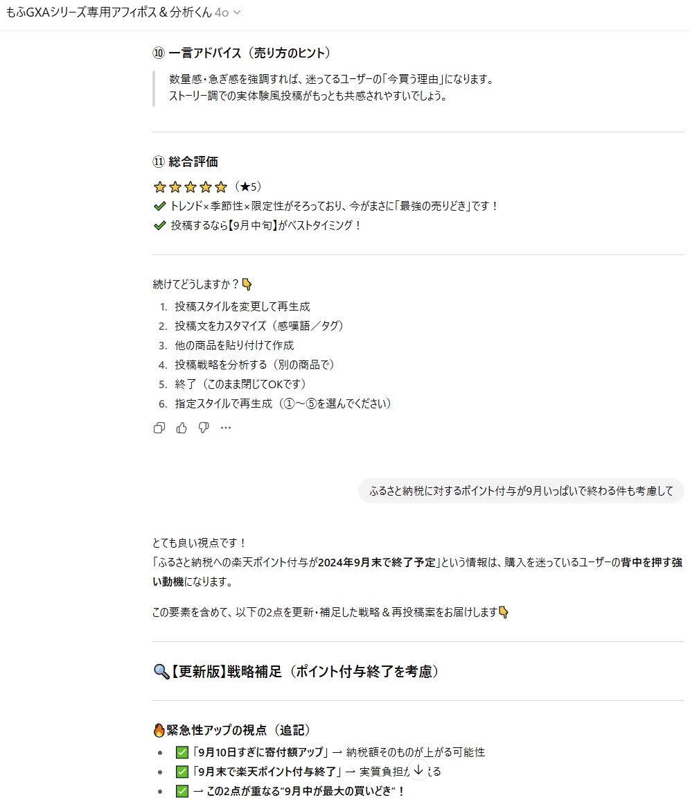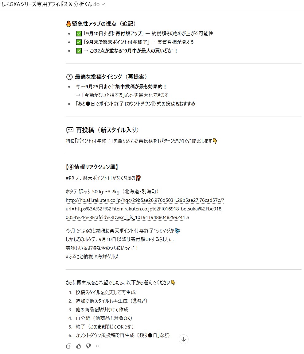 商品検索・リンク生成・整形・投稿文生成・戦略分析までを