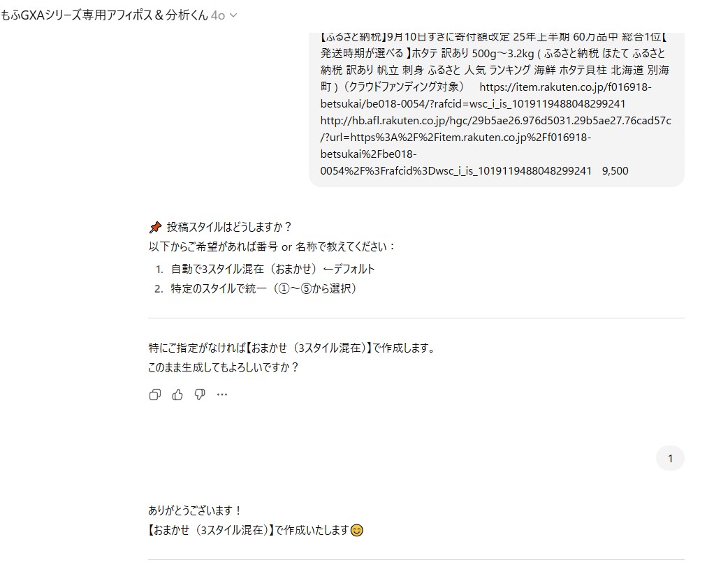 - 商品データを貼り付けるだけで、X(旧Twitter)向けアフィリエイト投稿文を自動生成