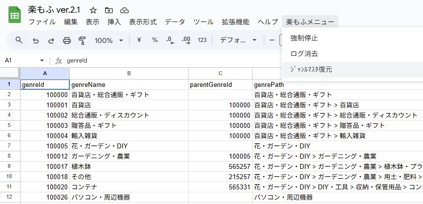 ※取得マニュアルも添付しております - ジャンル名(B4) → 候補一覧が表示され、チェックで対象ジャンルを選択