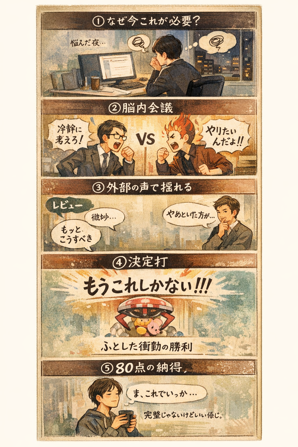 AとBの比較が主役じゃなくて、「選べない自分」の実況が主役になってる。