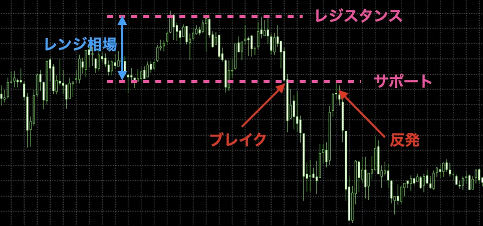 レンジ相場では、売りと買いが均衡していて、高値と底値を言ったりきたりし、バランスが取れている状態にあります。