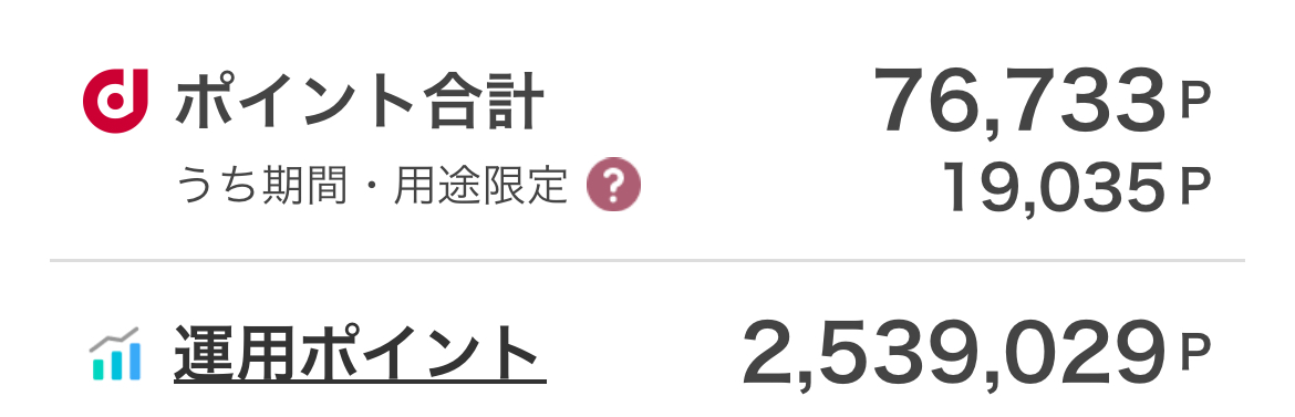 私は200万ポイント超を運用しています。(画像はdポイント投資)200万P=200万円です。