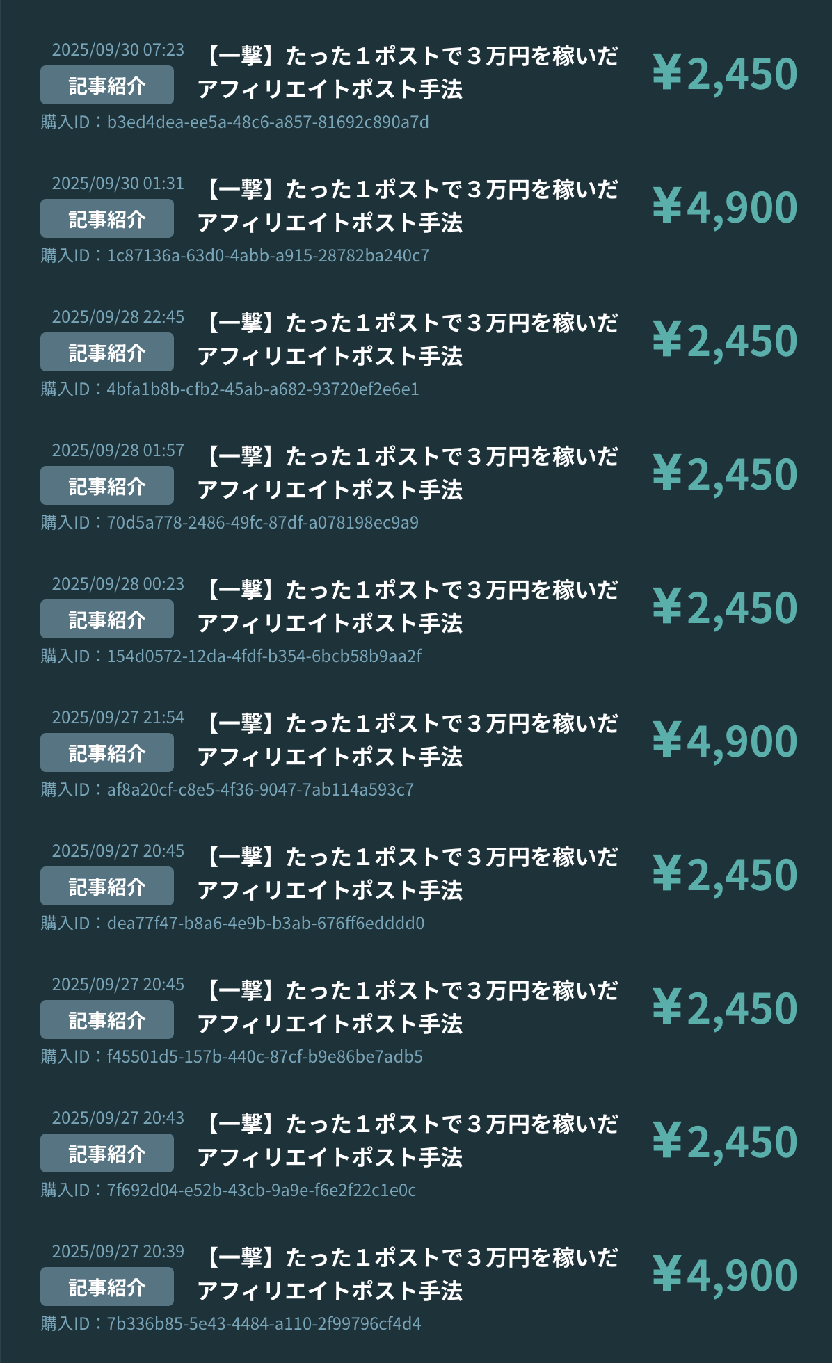 アフィリエイトで経由購入されまくる文章術が学べる教材です。